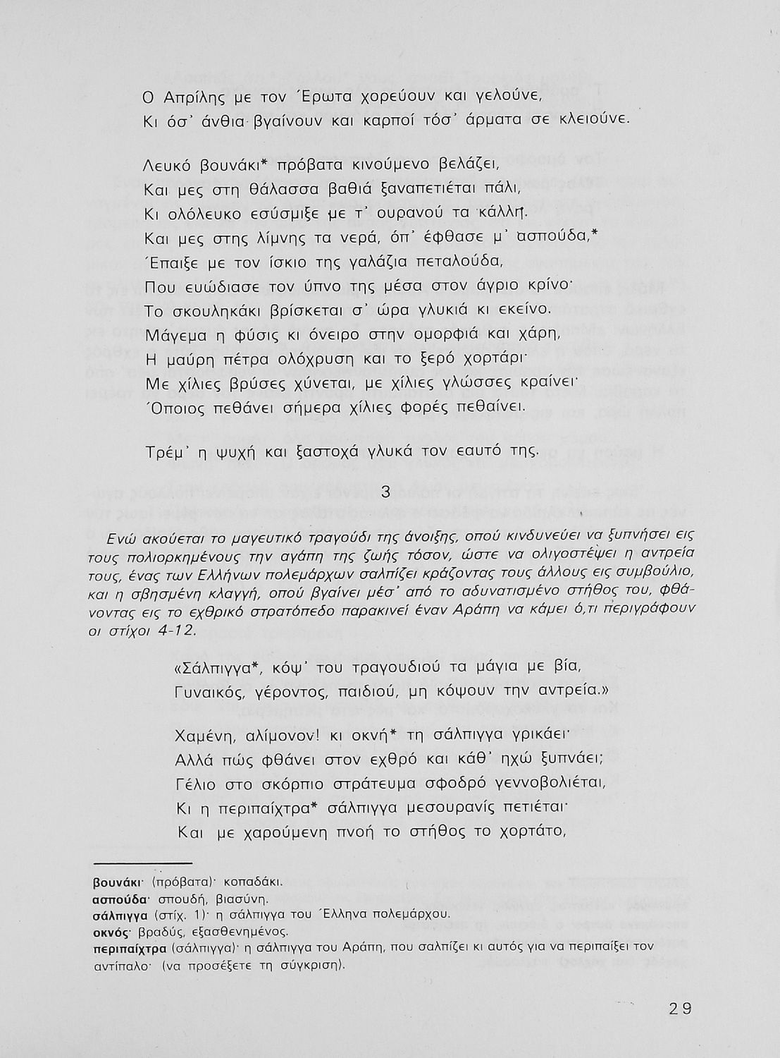 Σχολικό εγχειρίδιο Νέων Ελληνικών Β' Γυμνασίου που περιέχει δημοτικά τραγούδια, πεζά, δοκίμια και ποιήματα σύγχρονων Ελλήνων συγγραφέων και είναι χωρισμένο σε θεματικές ενότητες όπως η πόλη και η ύπαιθρος, η ...