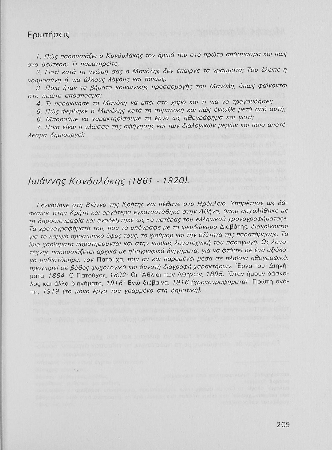Σχολικό εγχειρίδιο Νέων Ελληνικών Α΄ Γυμνασίου που περιλαμβάνει δοκίμια, πεζά και ποιήματα Ελλήνων συγγραφέων και δημοτικά τραγούδια εμπνευσμένα από τη θρησκευτική, εθνική και κοινωνική ζωή, τη "δοκιμασία της ...