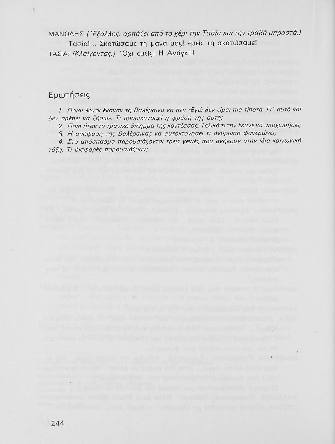 Σχολικό εγχειρίδιο Νέων Ελληνικών Α΄ Γυμνασίου που περιλαμβάνει δοκίμια, πεζά και ποιήματα Ελλήνων συγγραφέων και δημοτικά τραγούδια εμπνευσμένα από τη θρησκευτική, εθνική και κοινωνική ζωή, τη "δοκιμασία της ...
