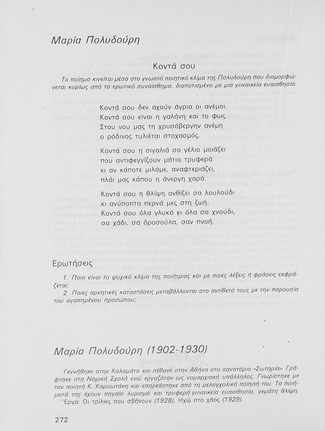 Κείμενα Νεοελληνικής Λογοτεχνίας Β ΄ Λυκείου