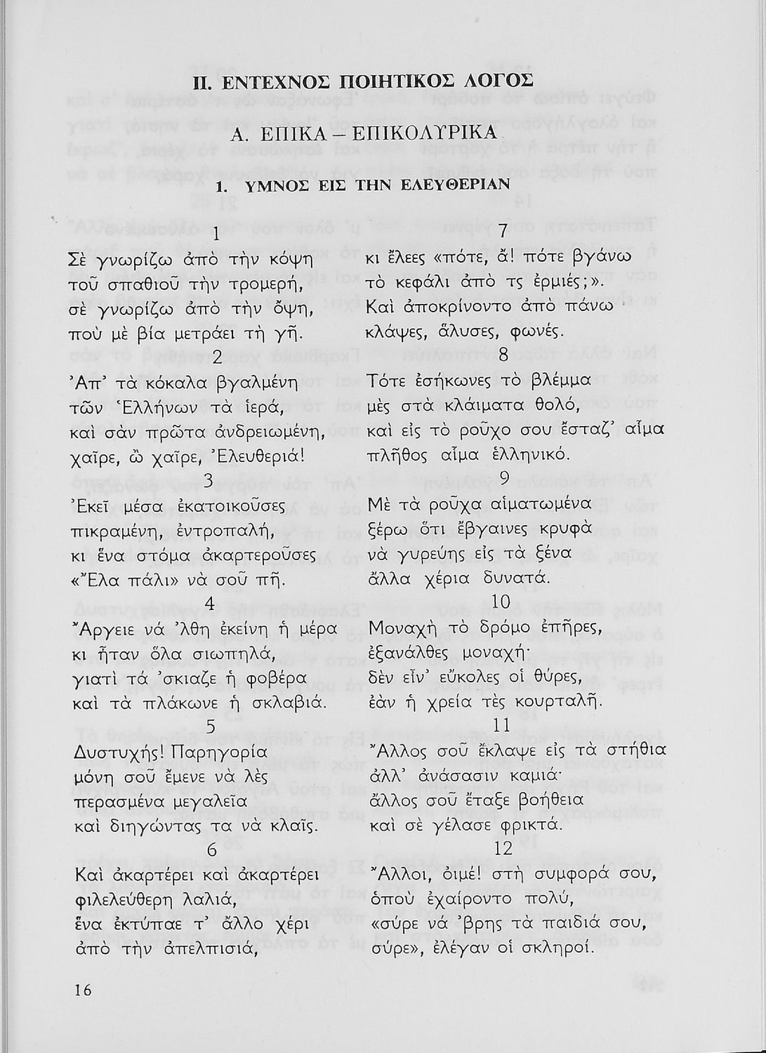 Σχολικό εγχειρίδιο Νέων Ελληνικών ΣΤ΄ Γυμνασίου που περιέχει πεζά και ποιήματα συγγραφέων της βυζαντινής και μεταβυζαντινής περιόδου πατριωτικού και θρησκευτικού περιεχομένου και δημοτικά τραγούδια. ...