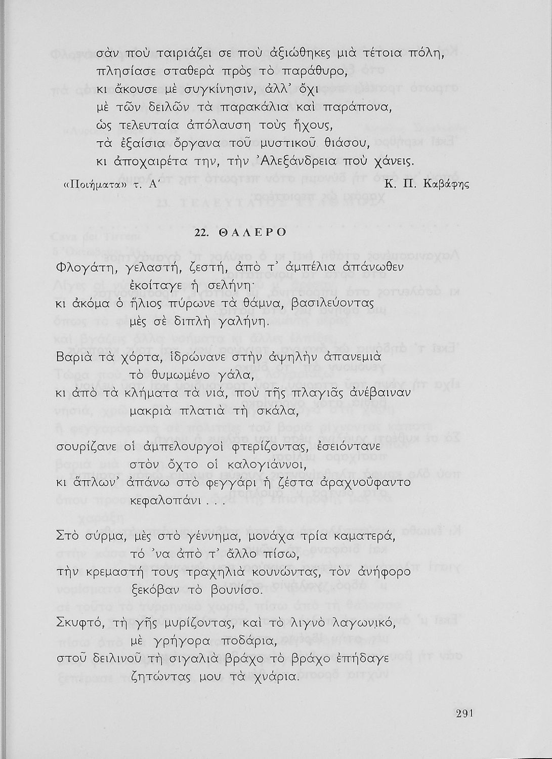 Σχολικό εγχειρίδιο Νέων Ελληνικών για τη ΣΤ΄ τάξη του Γυμνασίου με κείμενα και ποιήματα Ελλήνων και ξένων λογοτεχνών. Ο πεζός λόγος ανήκει στους ρητορικούς λόγους, στις διηγήσεις, στις περιγραφές και στα ευθυμογραφήματα. Η ποίηση περιλαμβάνει δημοτικά και έντεχνο ποιητικό λόγο ενώ υπάρχουν κείμενα από την ιταλική, γαλλική και αγγλική λογοτεχνία.