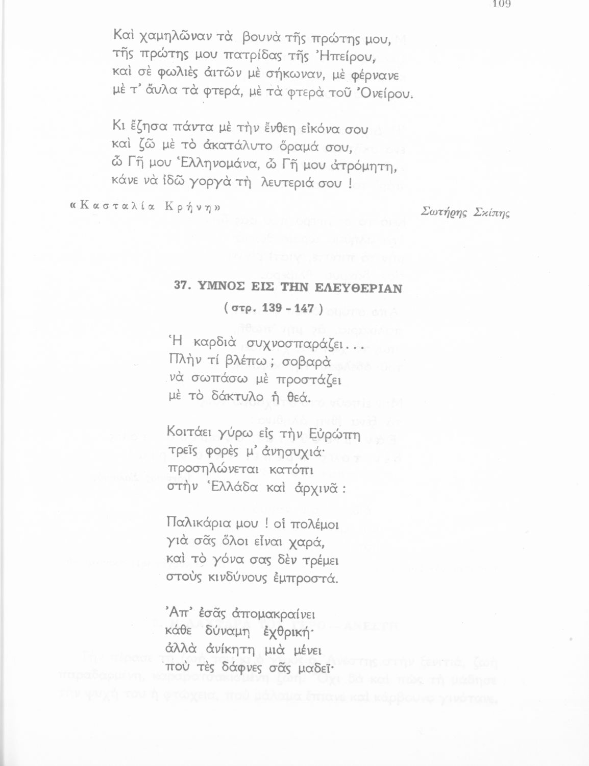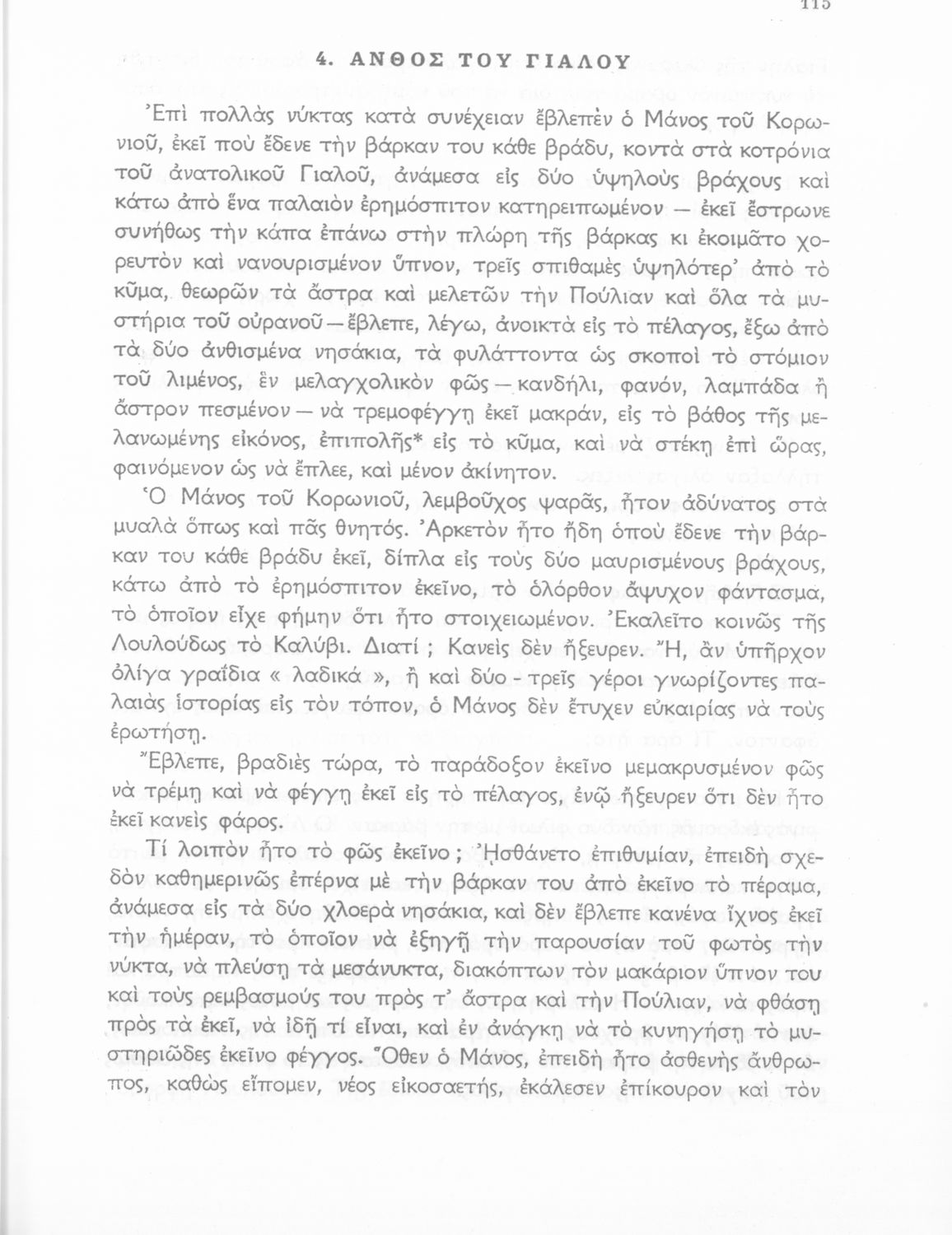 Σχολικό εγχειρίδιο Νέων Ελληνικών Δ΄ Γυμνασίου Θηλέων που περιλαμβάνει πεζά, ποιήματα και δημοτικά τραγούδια εμπνευσμένα από την σύγχρονη ελληνική ιστορία και την οικογενειακή και θρησκευτική ζωή. Περιέχει και