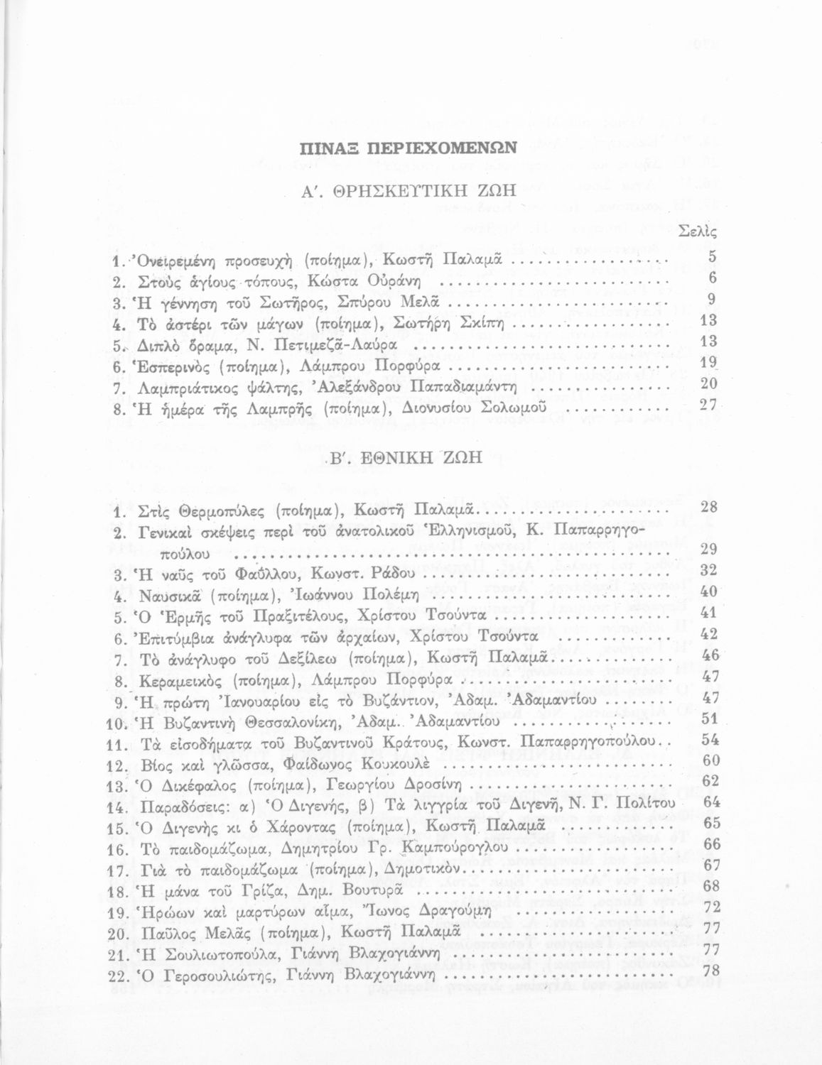 Σχολικό εγχειρίδιο Νέων Ελληνικών Δ΄ Γυμνασίου και Β΄ Αστικού Σχολείου που περιέχει πεζά και ποιήματα Ελλήνων συγγραφέων εμπνευσμένα από τη θρησκευτική και κοινωνική ζωή, την ελληνική μυθολογία, την αρχαία και