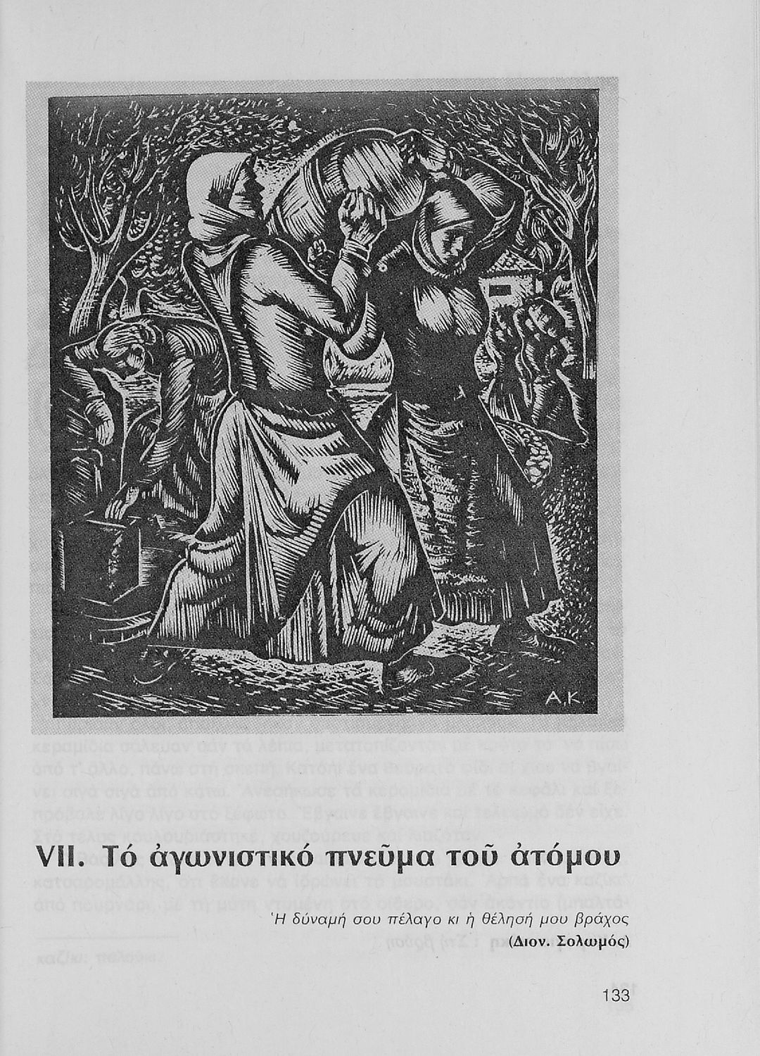 Σχολικό εγχειρίδιο Νέων Ελληνικών Α΄ Γυμνασίου που περιλαμβάνει δοκίμια, πεζά και ποιήματα Ελλήνων συγγραφέων και δημοτικά τραγούδια εμπνευσμένα από τη θρησκευτική, εθνική και κοινωνική ζωή, τη "δοκιμασία της ...