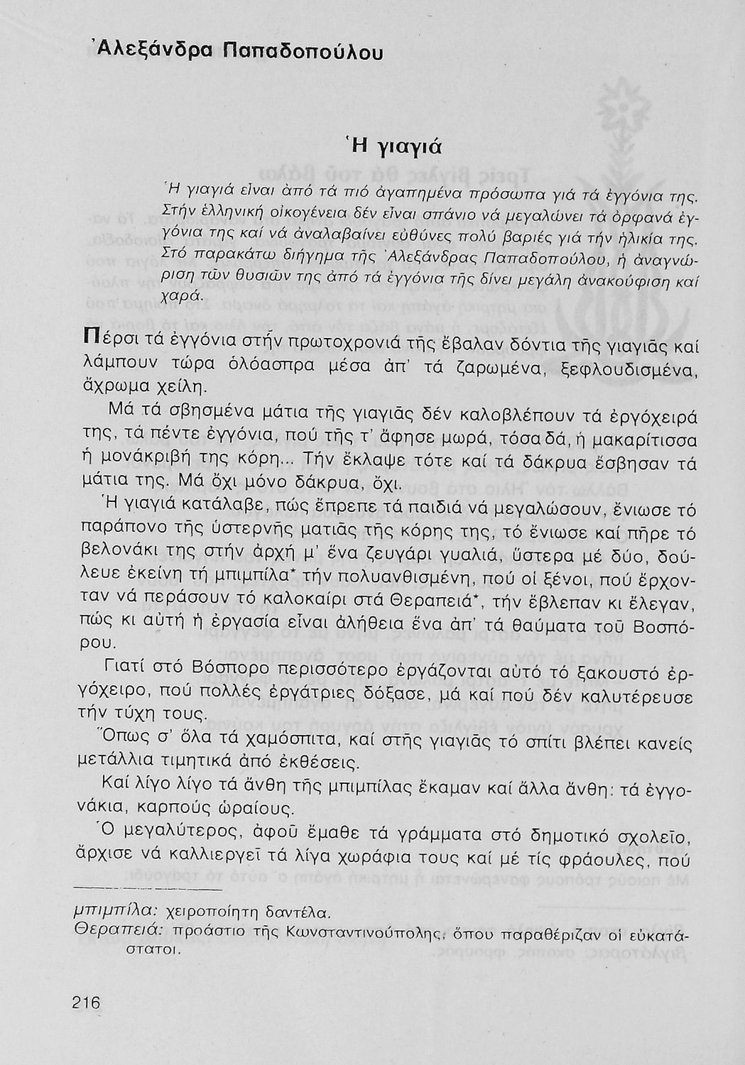 Σχολικό εγχειρίδιο Νέων Ελληνικών Α΄ Λυκείου που περιλαμβάνει πεζά, ποιήματα, δοκίμια και θεατρικά έργα σύγχρονων Ελλήνων και κλασσικών ξένων συγγραφέων, ερωτήσεις και βιογραφικά σημειώματα
