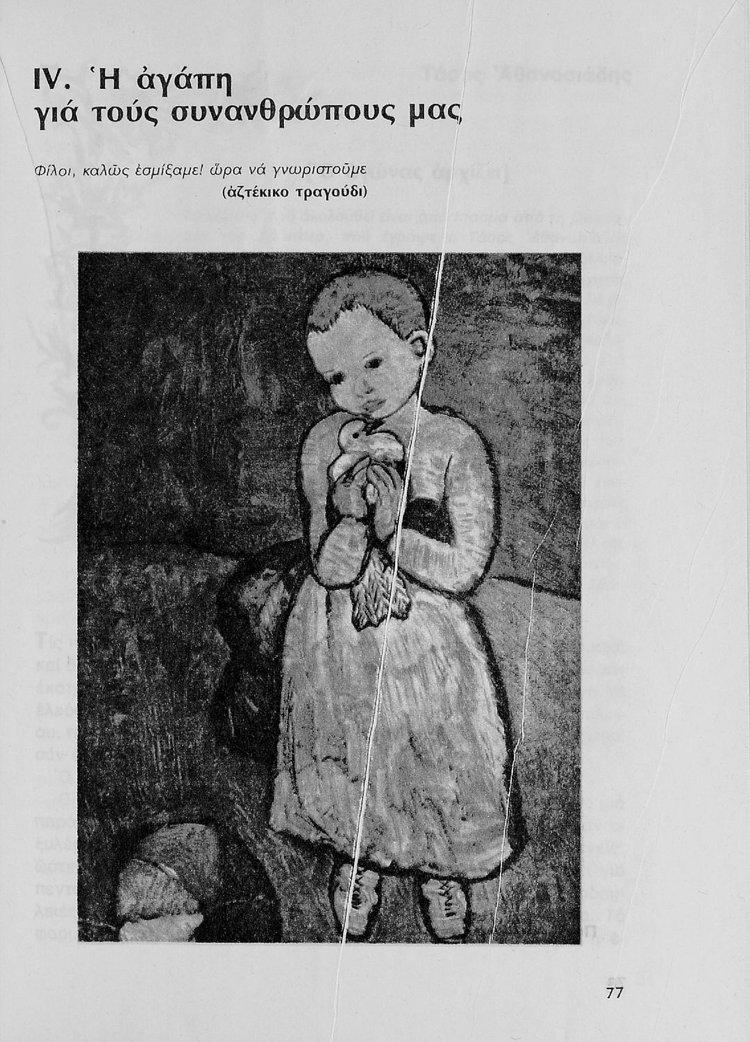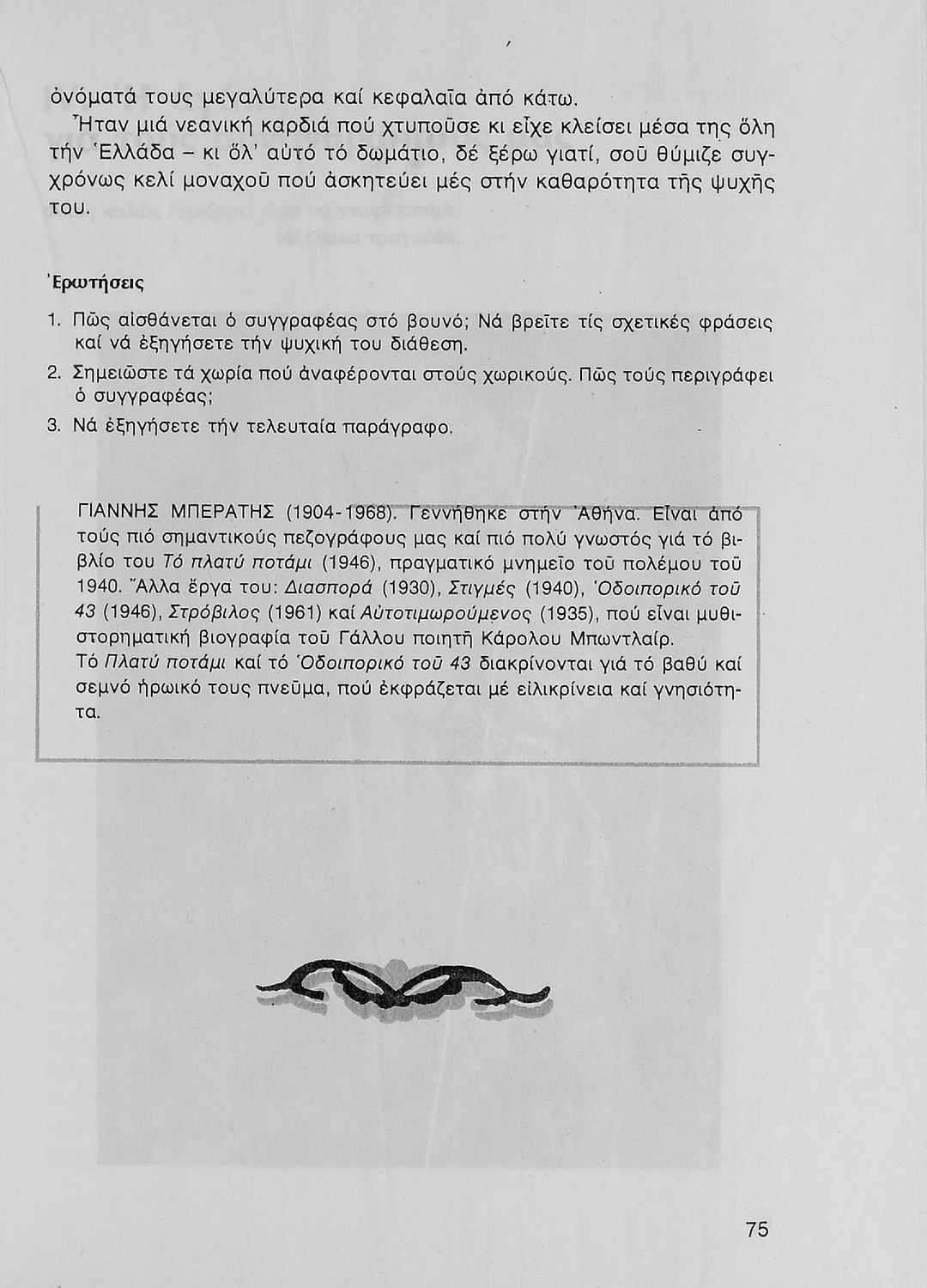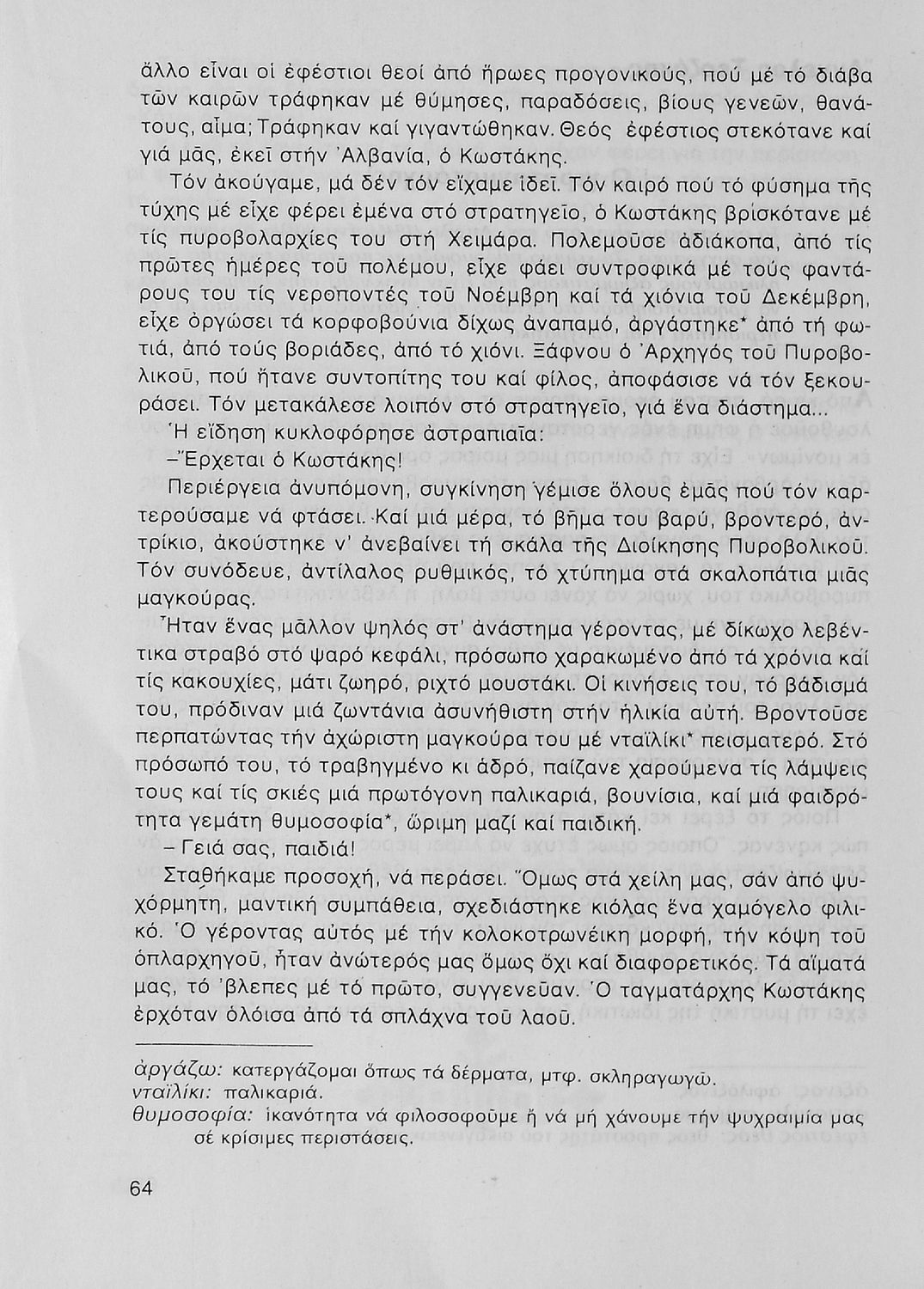 Σχολικό εγχειρίδιο Νέων Ελληνικών Α΄ Γυμνασίου που περιλαμβάνει δοκίμια, πεζά και ποιήματα Ελλήνων συγγραφέων και δημοτικά τραγούδια εμπνευσμένα από τη θρησκευτική, εθνική και κοινωνική ζωή, τη "δοκιμασία της Κύπρου", και την ελληνική φύση. Περιέχει και έργα ευρωπαίων συγγραφέων.