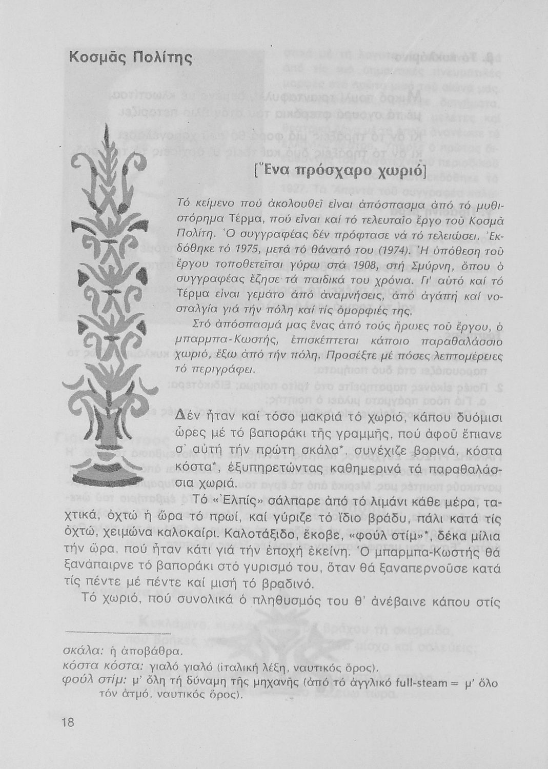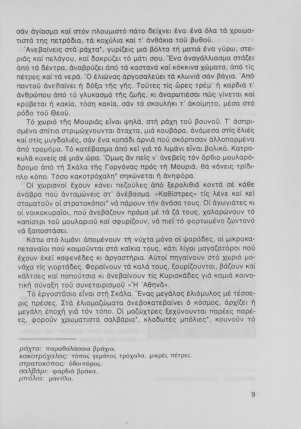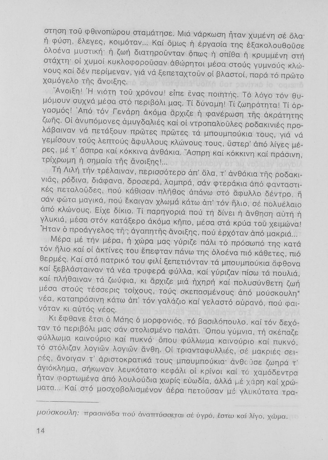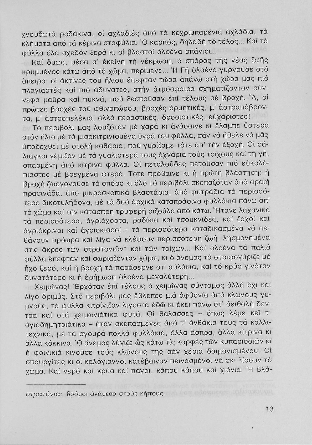 Σχολικό εγχειρίδιο Νέων Ελληνικών Α΄ Γυμνασίου που περιλαμβάνει δοκίμια, πεζά και ποιήματα Ελλήνων συγγραφέων και δημοτικά τραγούδια εμπνευσμένα από τη θρησκευτική, εθνική και κοινωνική ζωή, τη "δοκιμασία της Κύπρου", και την ελληνική φύση. Περιέχει και έργα ευρωπαίων συγγραφέων.