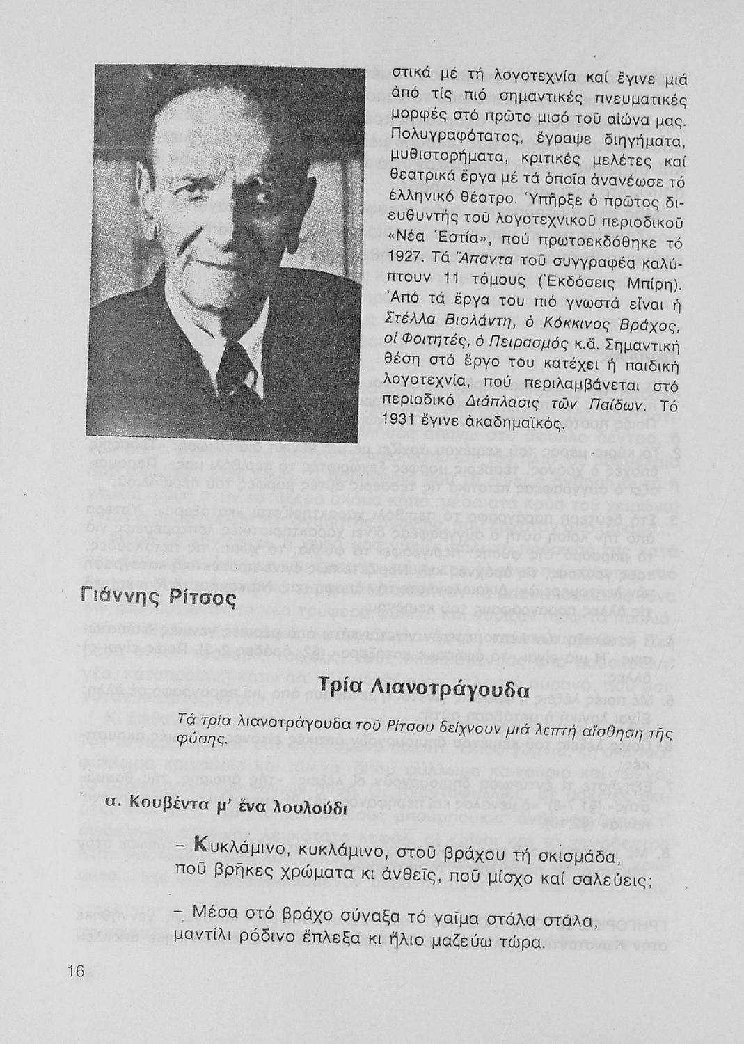 Σχολικό εγχειρίδιο Νέων Ελληνικών Α΄ Λυκείου που περιλαμβάνει πεζά, ποιήματα, δοκίμια και θεατρικά έργα σύγχρονων Ελλήνων και κλασσικών ξένων συγγραφέων, ερωτήσεις και βιογραφικά σημειώματα