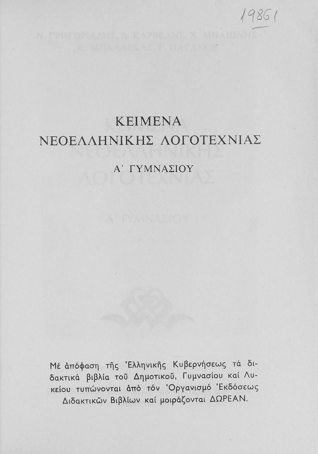 Συγγραφέας: Ν. Γρηγοριάδης, Δ. Καρβέλης, Χ. Μηλιώνης, Κ. Μπαλάσκας, Γ. Παγανός
