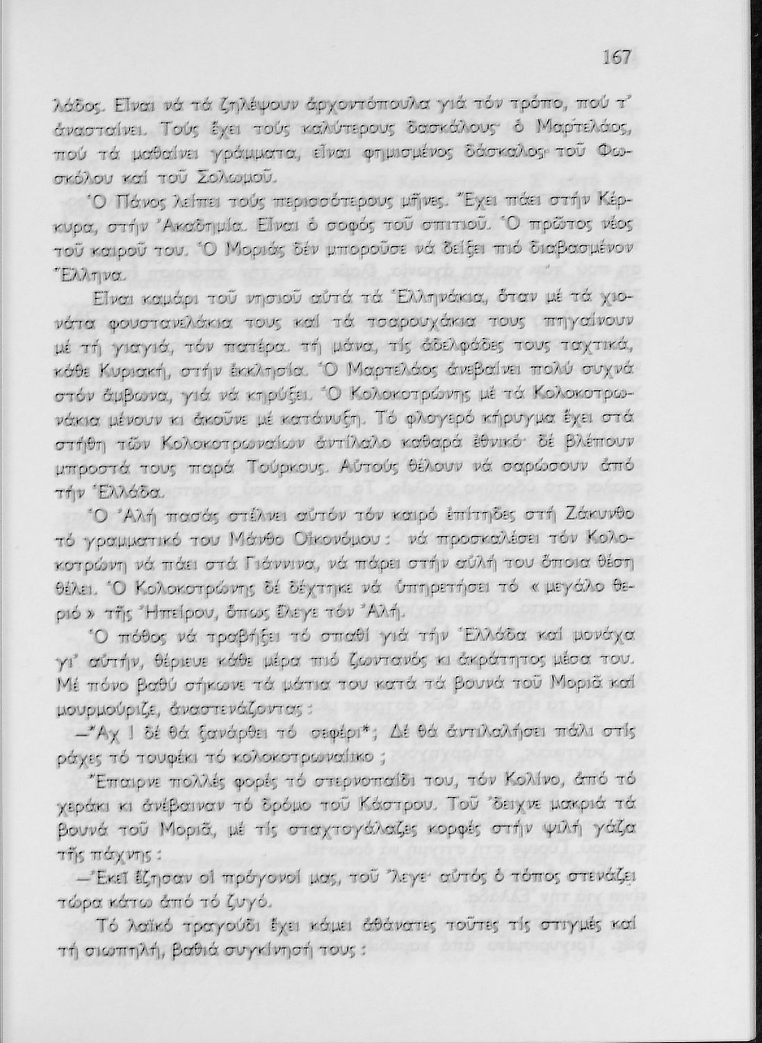 Σχολικό εγχειρίδιο Νέων Ελληνικών της Γ΄ Γυμνασίου με κείμενα και ποιήματα από το πρόσφατο και παλαιότερο ιστορικό παρελθόν της χώρας καθώς και από τη θρησκευτική και κοινωνική ζωή του τόπου και την οργάνωση του κράτους. Σχόλια και σχέδια της μαθήτριας στις σελίδες του βιβλίου. Στο τέλος του βιβλίου υπάρχει λεξιλόγιο και βιογραφίες των συγγραφέων.