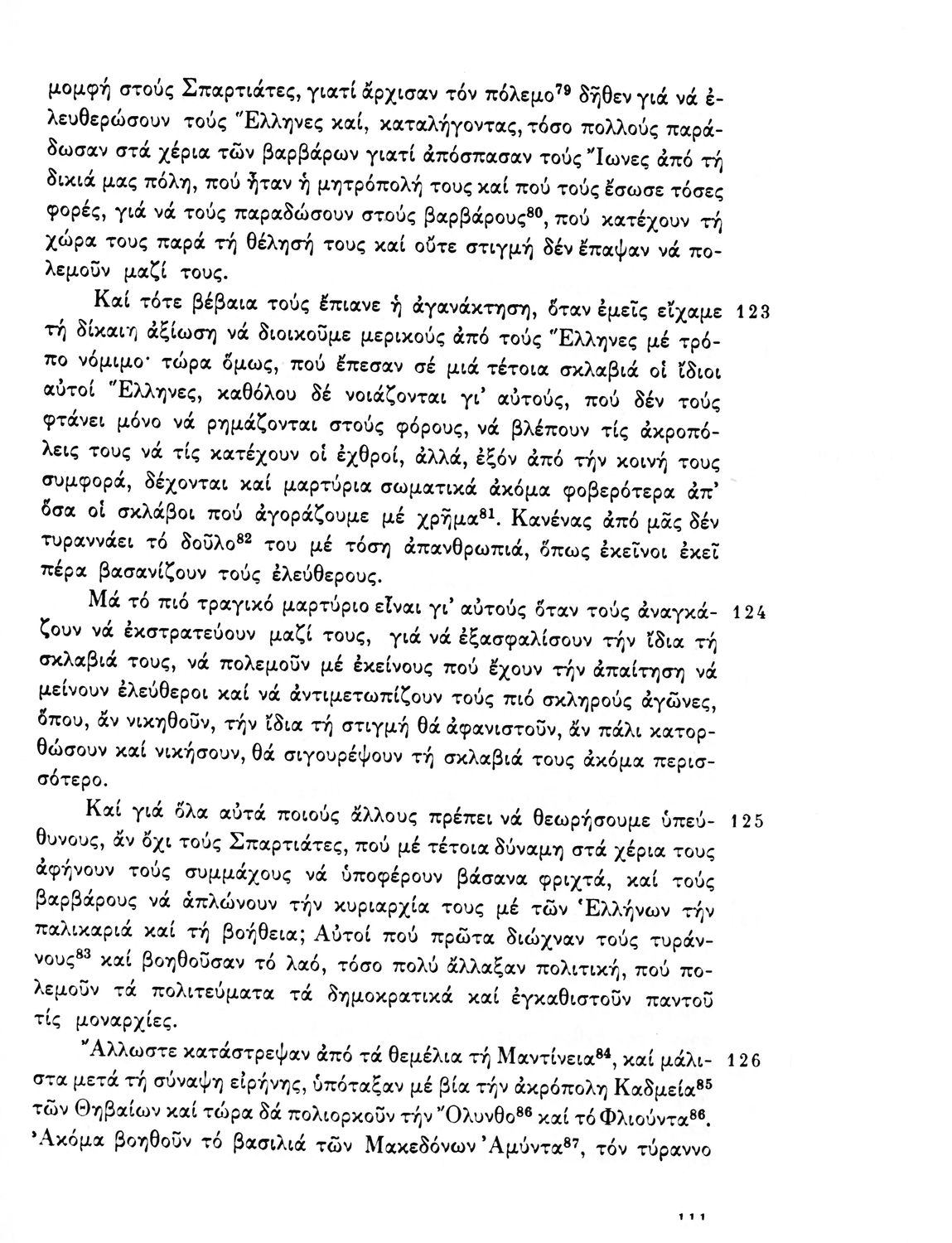 Μαθητικό βοήθημα Αρχαίων Ελληνικών που περιλαμβάνει μετάφραση του Λόγου του Ισοκράτη Πανηγυρικός και ερμηνευτικές σημειώσεις.