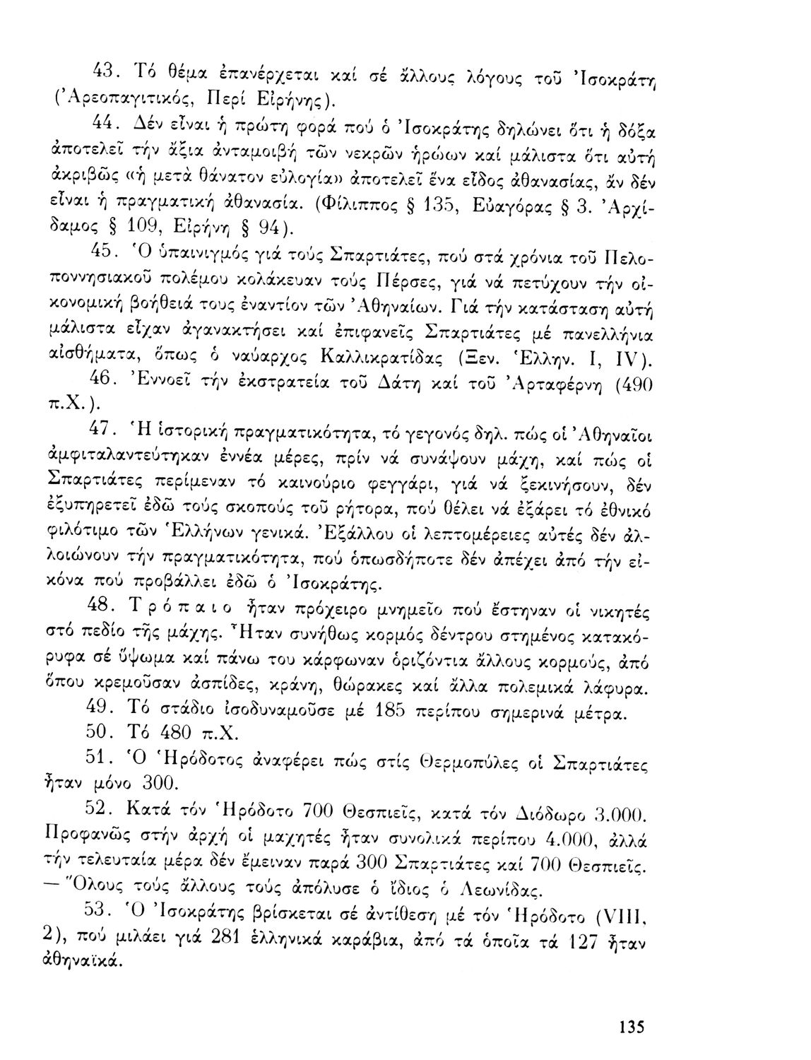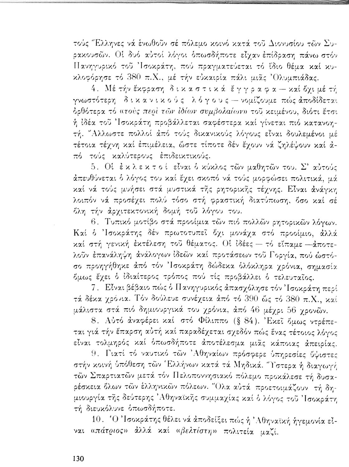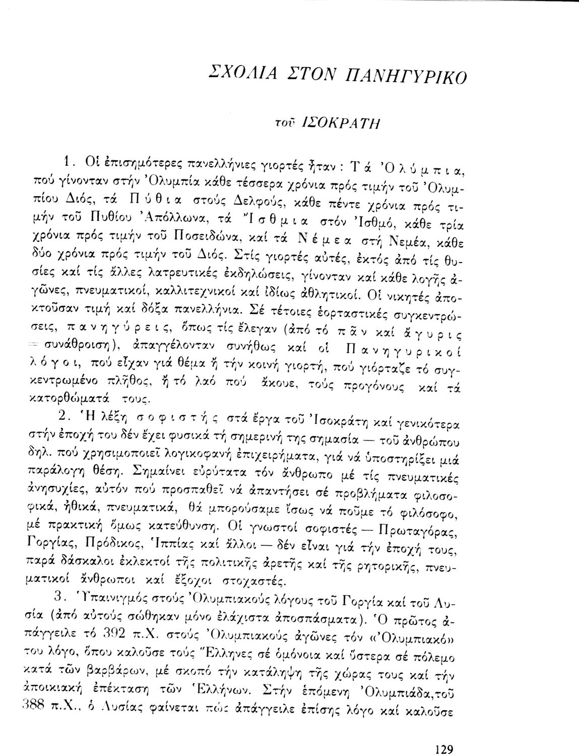 Μαθητικό βοήθημα Αρχαίων Ελληνικών που περιλαμβάνει μετάφραση του Λόγου του Ισοκράτη Πανηγυρικός και ερμηνευτικές σημειώσεις.