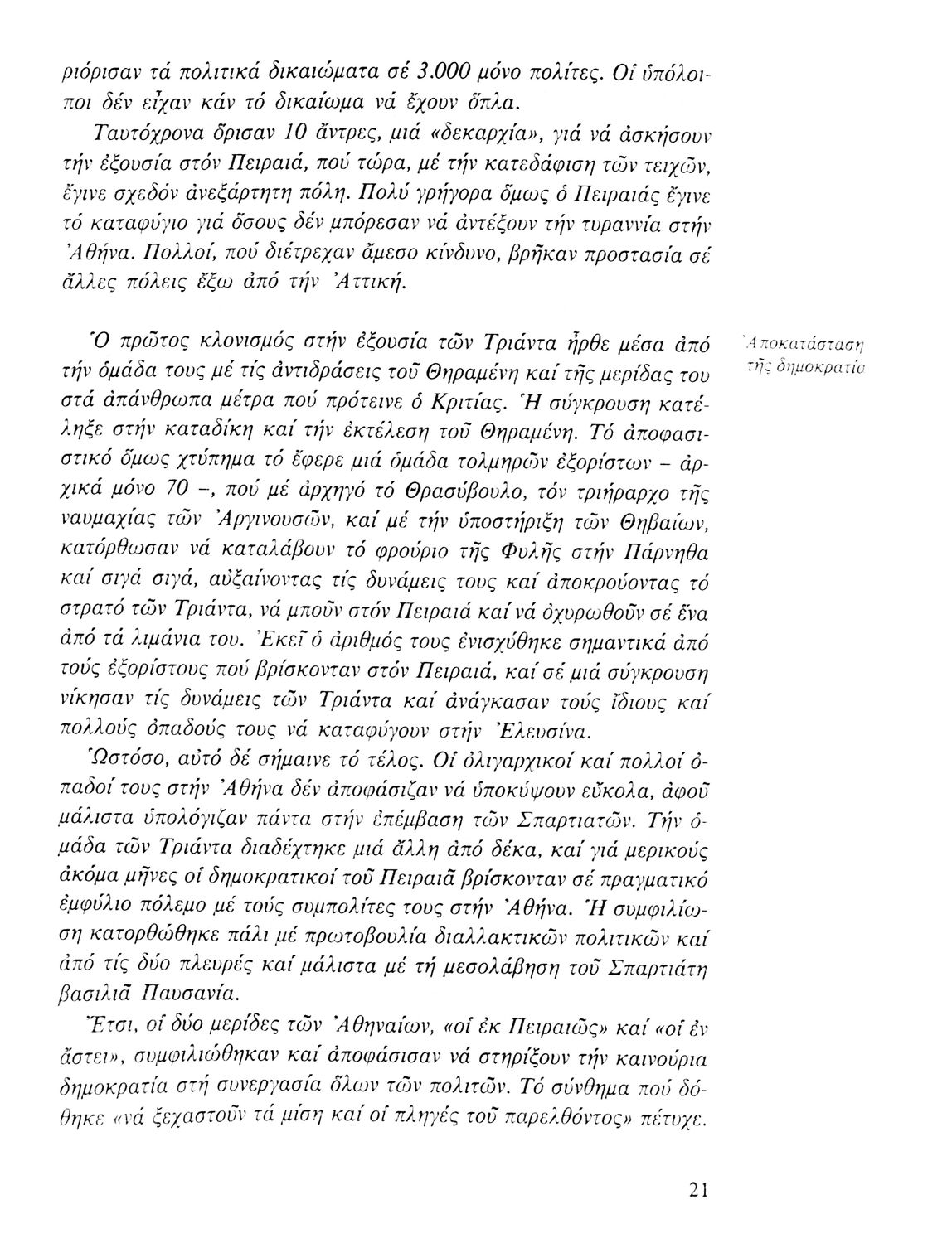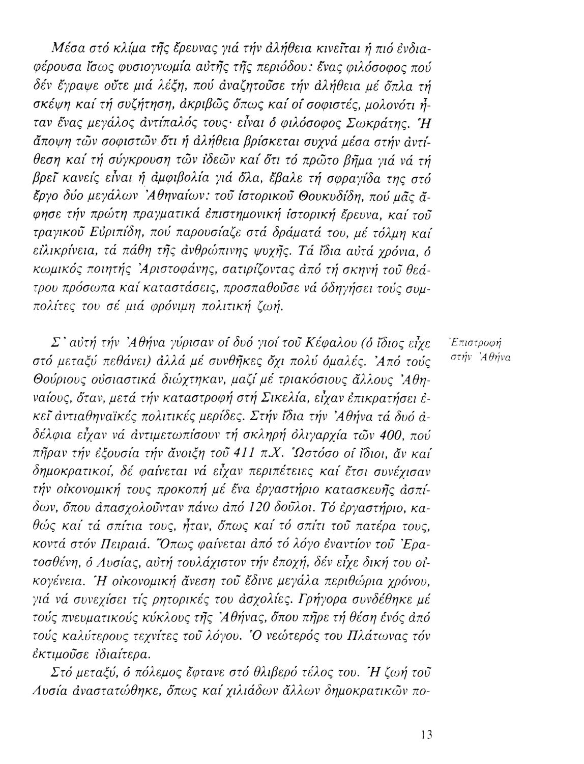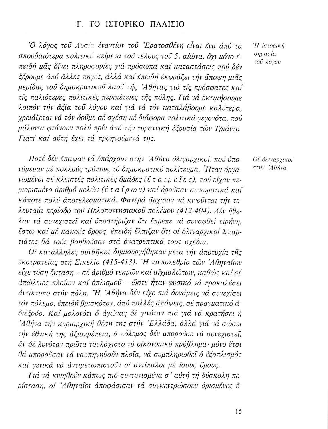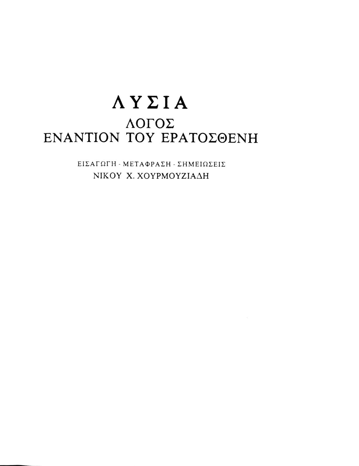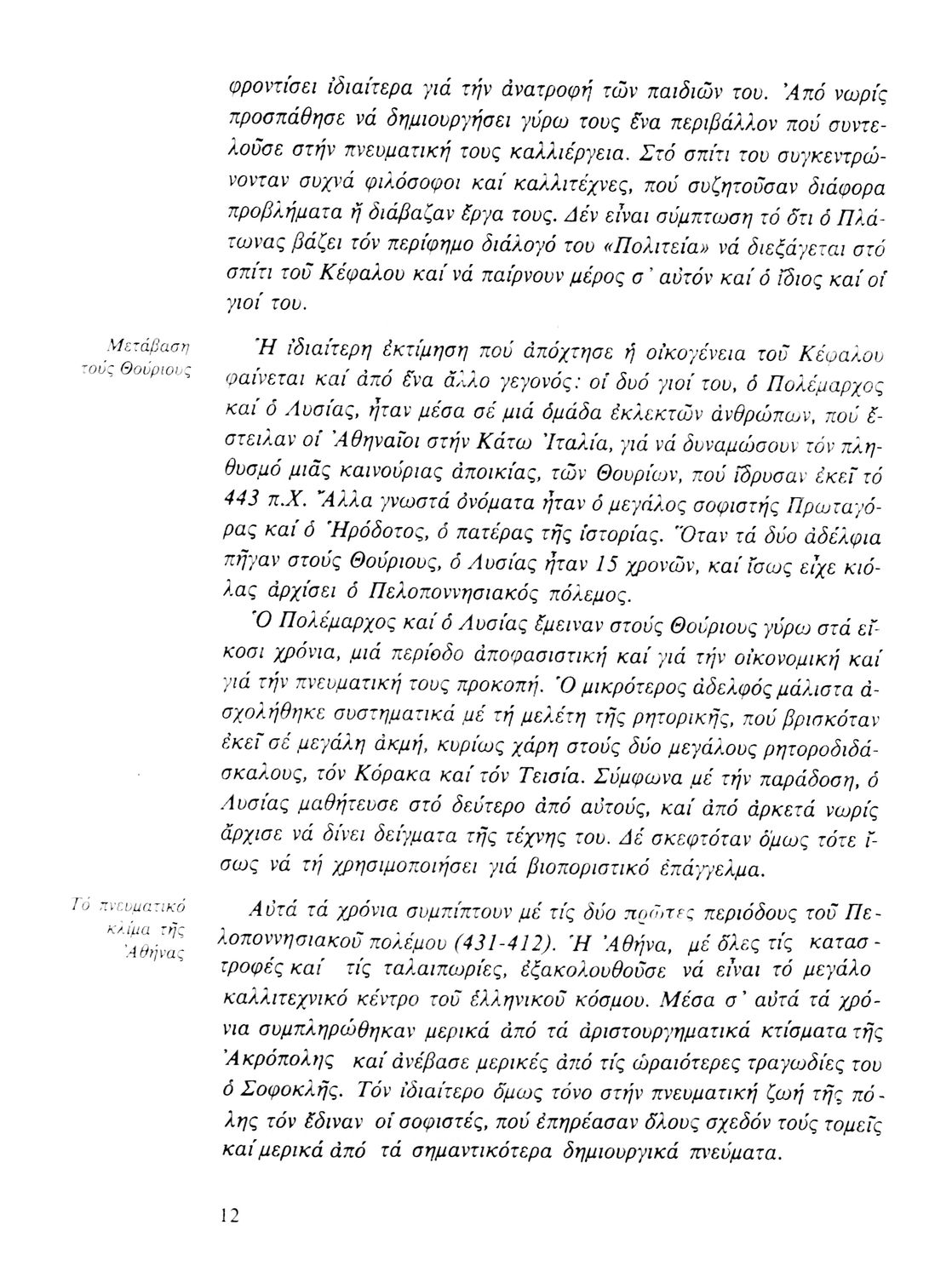 Σχολικό εγχειρίδιο Αρχαίων Ελληνικών για τη Β΄ Γυμνασίου που περιλαμβάνει Λόγους των Λυσία και Ισοκράτη και αποσπάσματα από τα Ελληνικά του Ξενοφώντα σε μετάφραση, εισαγωγή στη ζωή και το έργο τους και ερμηνευτικές σημειώσεις.