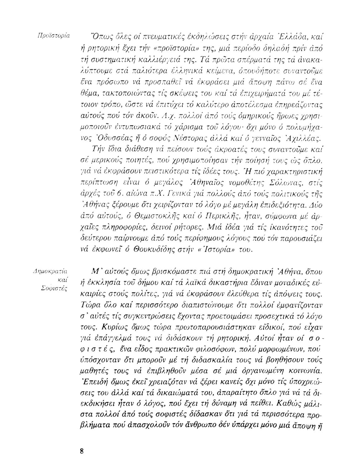 Βαθμίδα εκπαίδευσης: Δευτεροβάθμια Τάξη: Β' Γυμνασίου Μάθημα: Αρχαία Ελληνικά Γλώσσα: Δημοτική Παρουσίαση περιεχομένου: Σχολικό εγχειρίδιο Αρχαίων Ελληνικών για τη Β΄ Γυμνασίου που περιλαμβάνει Λόγους των Λυσία και Ισοκράτη και αποσπάσματα από τα Ελληνικά του Ξενοφώντα σε μετάφραση, εισαγωγή στη ζωή και το έργο τους και ερμηνευτικές σημειώσεις. |