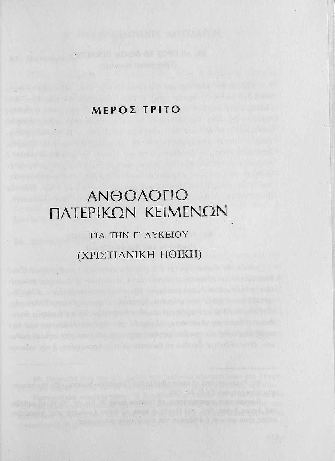 Βαθμίδα εκπαίδευσης: Δευτεροβάθμια Τάξη: Α' Λυκείου / Β' Λυκείου / Γ' Λυκείου Μάθημα: Θρησκευτικά Γλώσσα: Δημοτική Παρουσίαση περιεχομένου: Σχολικό εγχειρίδιο Θρησκευτικών Α΄, Β΄, Γ΄ Λυκείου που περιλαμβάνει κείμενα των Πατέρων της Εκκλησίας, τις μεταφράσεις τους και βιογραφικά σημειώματα των συγγραφέων. Ο συγγραφέας ήταν τακτικός καθηγητής του Πανεπιστημίου Αθηνών. |