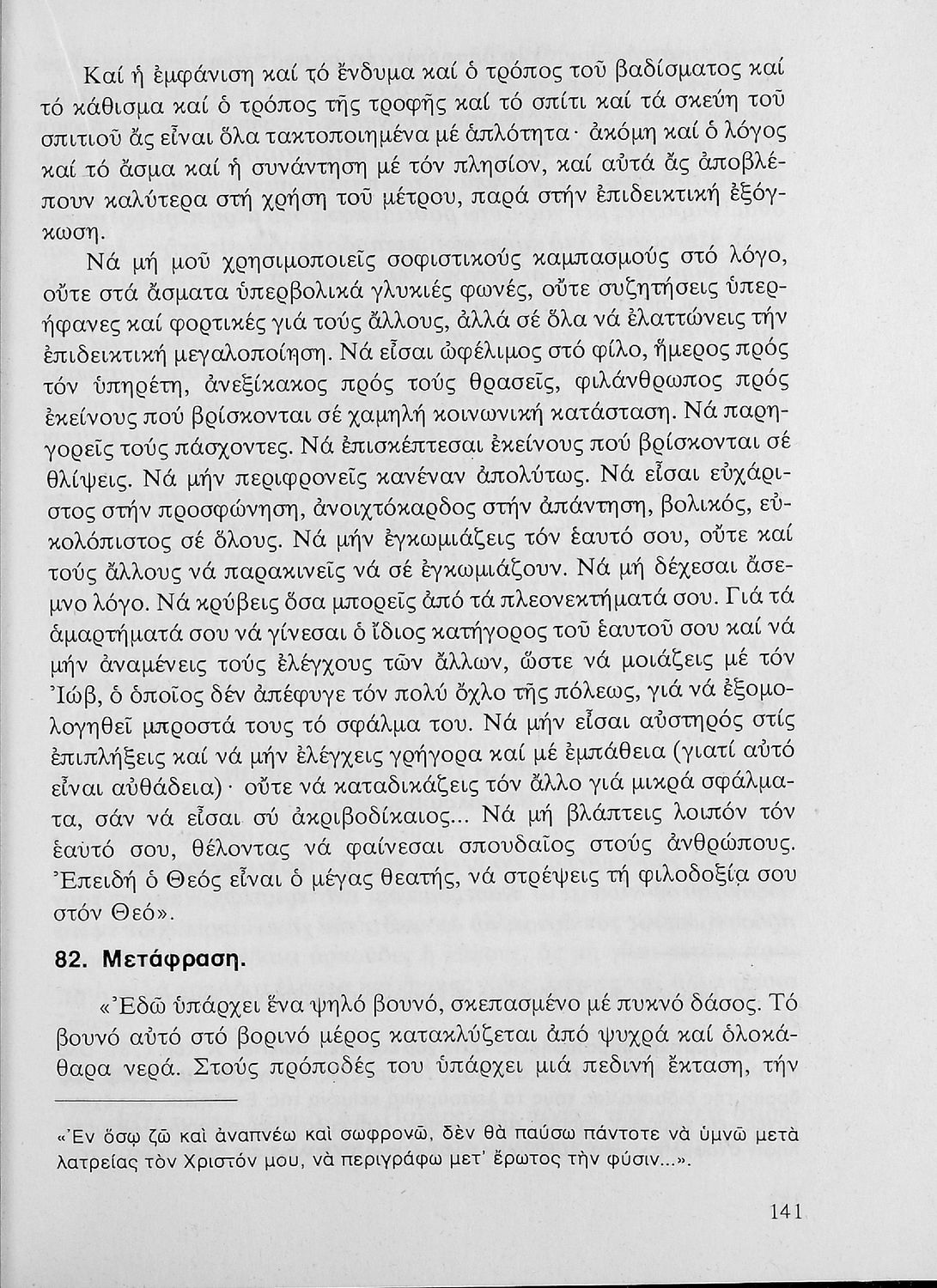 Σχολικό εγχειρίδιο Θρησκευτικών Α΄, Β΄ και Γ΄ Λυκείου που, μέσα από τα κείμενα των Πατέρων της Εκκλησίας, πραγματεύεται ζητήματα αρετής, ηθικής αμαρτίας, λύτρωσης, δικαιοσύνης και αγάπης. Επίσης αναφέρεται ...
