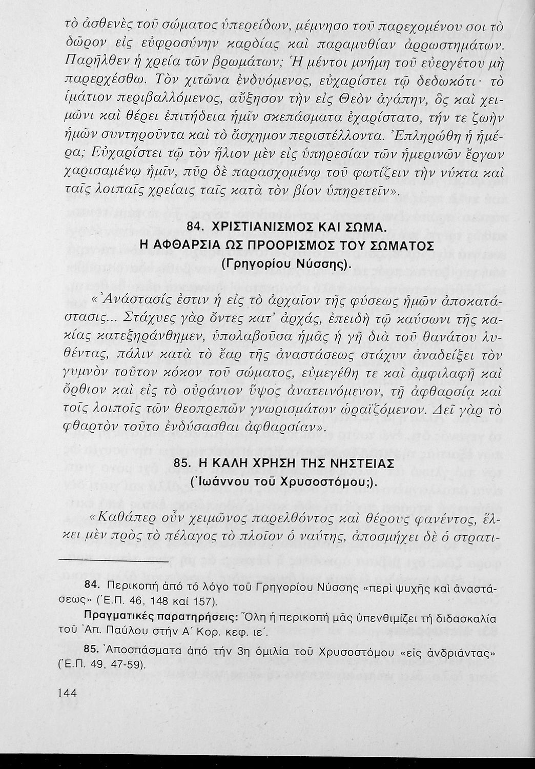 Παρουσίαση περιεχομένου: Σχολικό εγχειρίδιο Θρησκευτικών Α΄, Β΄, Γ΄ Λυκείου που περιλαμβάνει κείμενα των Πατέρων της Εκκλησίας, τις μεταφράσεις τους και βιογραφικά σημειώματα των συγγραφέων. Ο συγγραφέας ήταν τακτικός καθηγητής του Πανεπιστημίου Αθηνών.