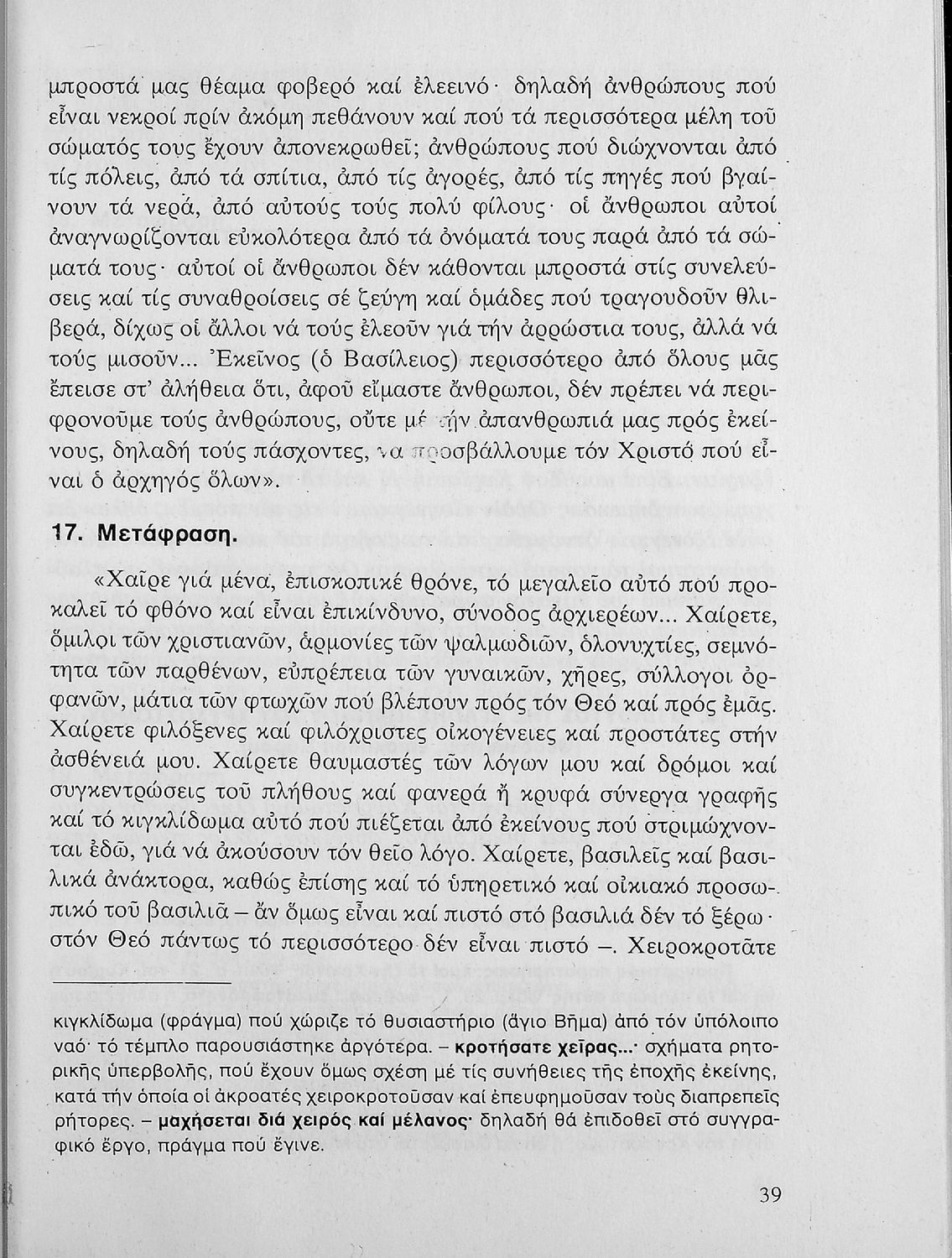 Παρουσίαση περιεχομένου: Σχολικό εγχειρίδιο Θρησκευτικών Α΄, Β΄, Γ΄ Λυκείου που περιλαμβάνει κείμενα των Πατέρων της Εκκλησίας, τις μεταφράσεις τους και βιογραφικά σημειώματα των συγγραφέων. Ο συγγραφέας ήταν τακτικός καθηγητής του Πανεπιστημίου Αθηνών.