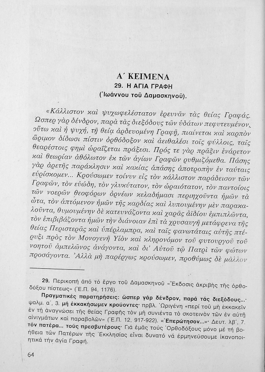 Παρουσίαση περιεχομένου: Σχολικό εγχειρίδιο Θρησκευτικών Α΄, Β΄, Γ΄ Λυκείου που περιλαμβάνει κείμενα των Πατέρων της Εκκλησίας, τις μεταφράσεις τους και βιογραφικά σημειώματα των συγγραφέων. Ο συγγραφέας ήταν τακτικός καθηγητής του Πανεπιστημίου Αθηνών.