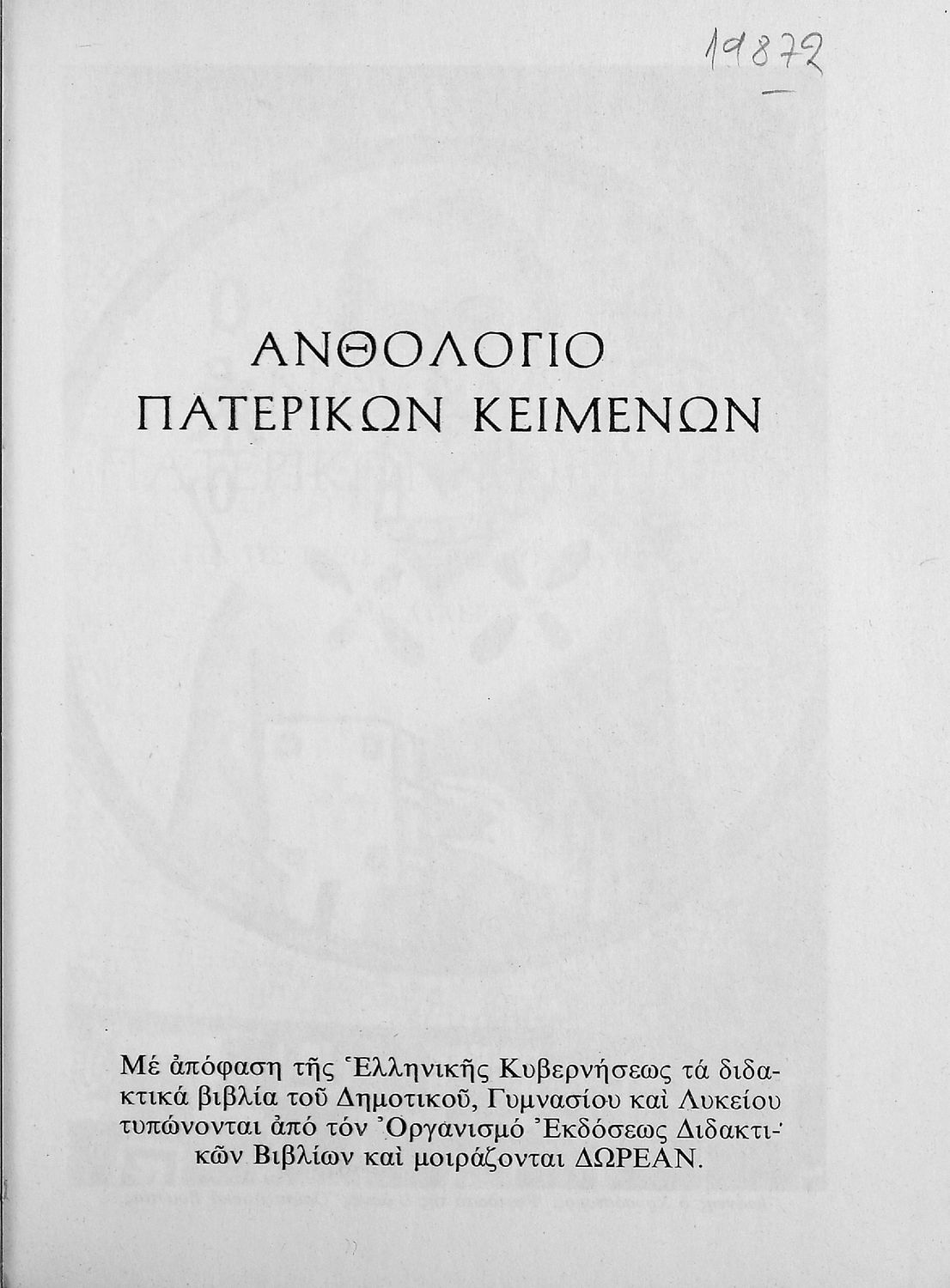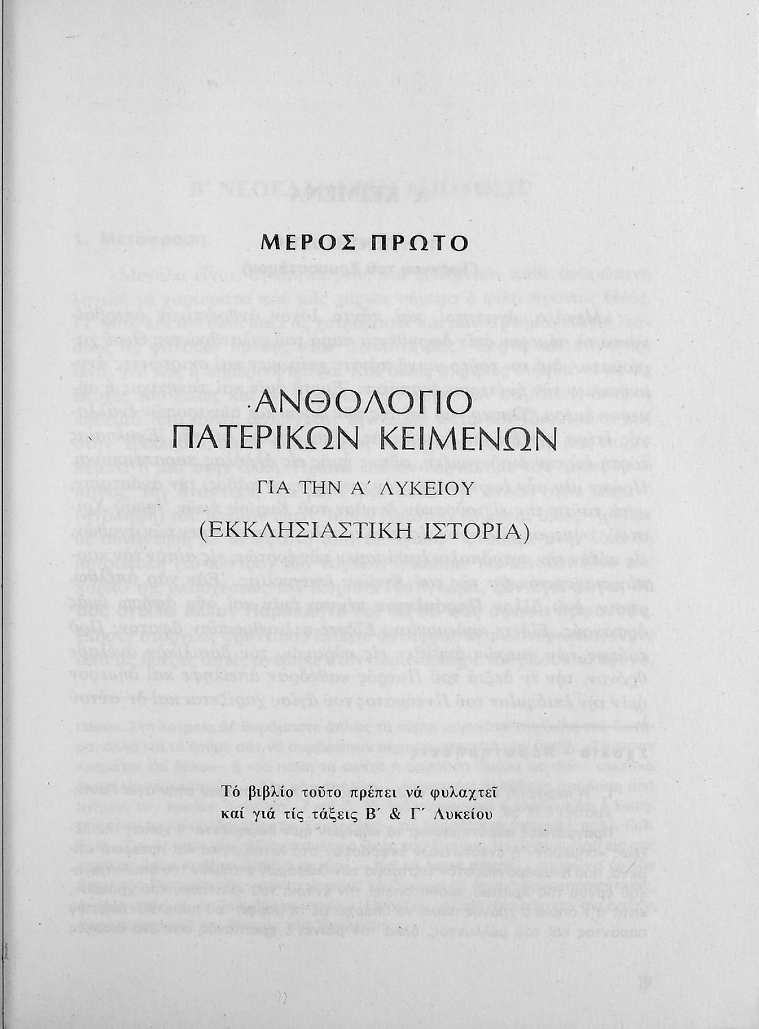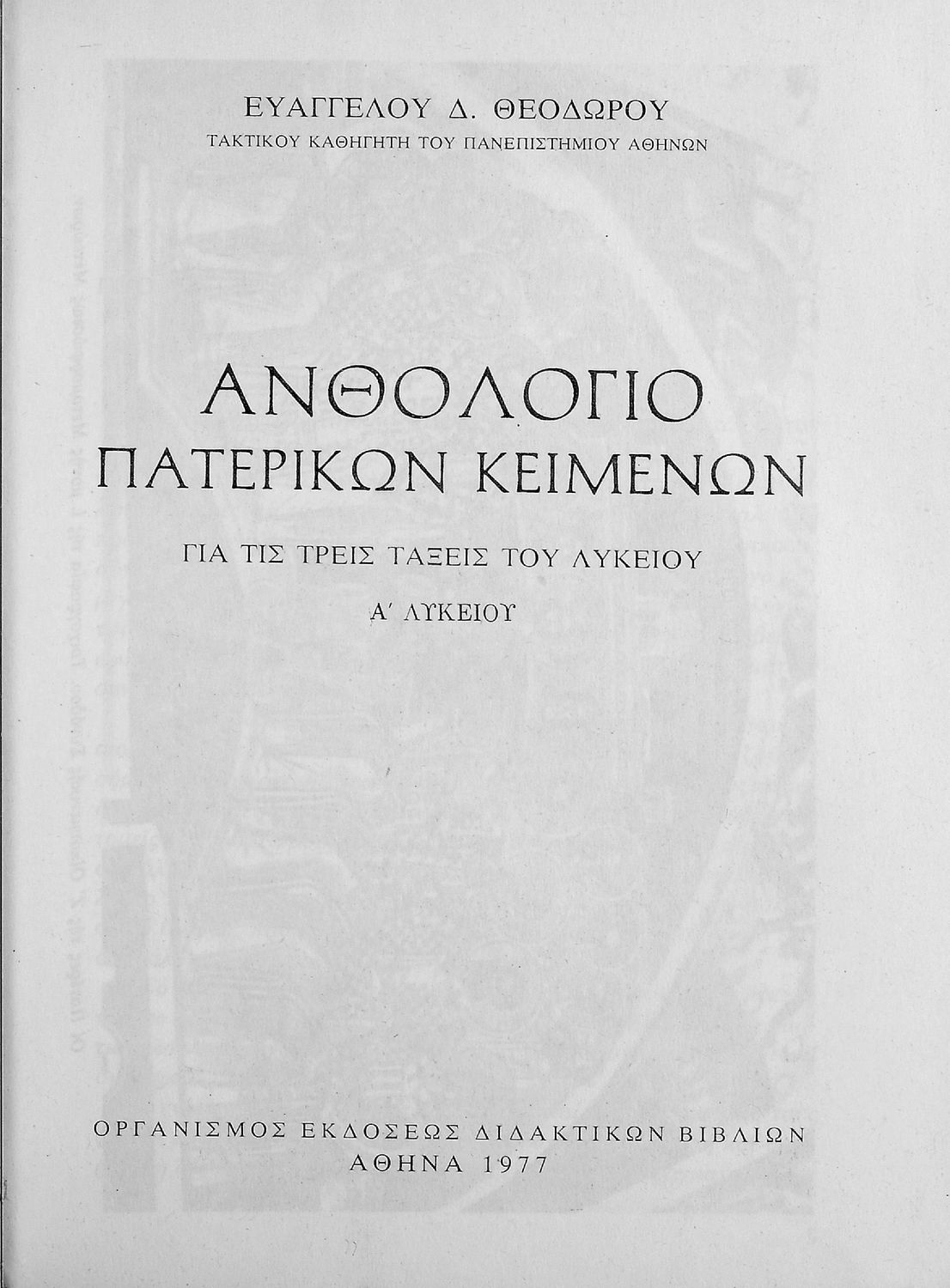 Τίτλος: Ανθολόγιον Πατερικών Κειμένων για τις τρεις τάξεις του Λυκείου