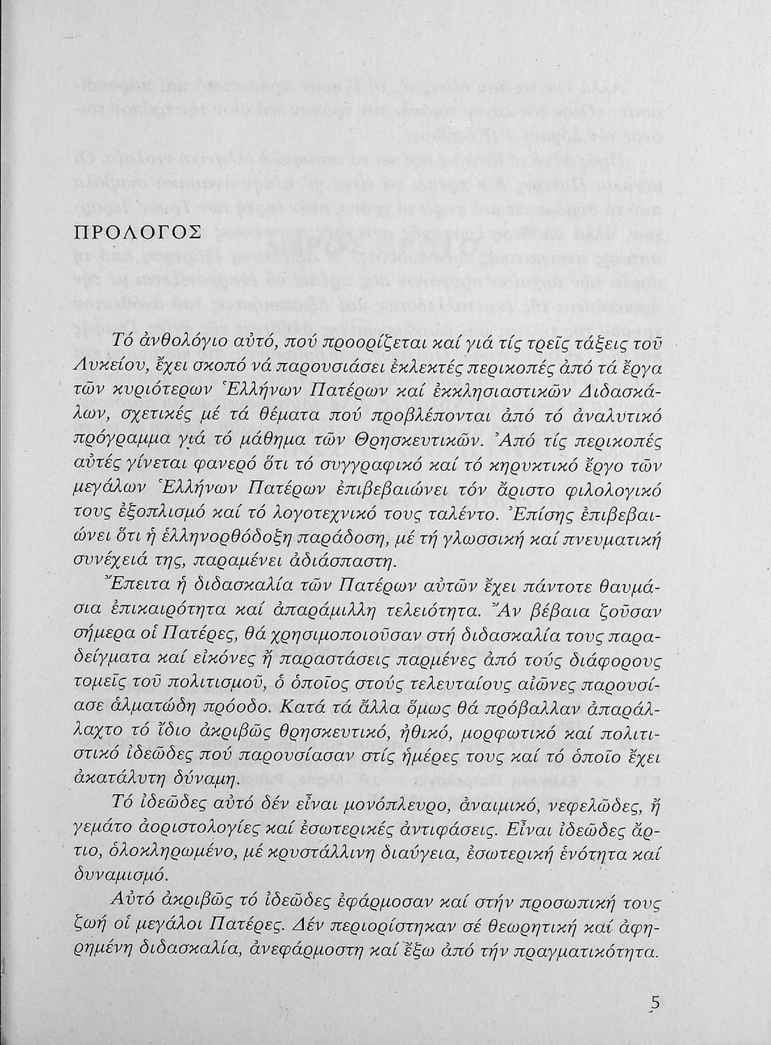Ανθολόγιον Πατερικών Κειμένων για τις τρεις τάξεις του Λυκείου