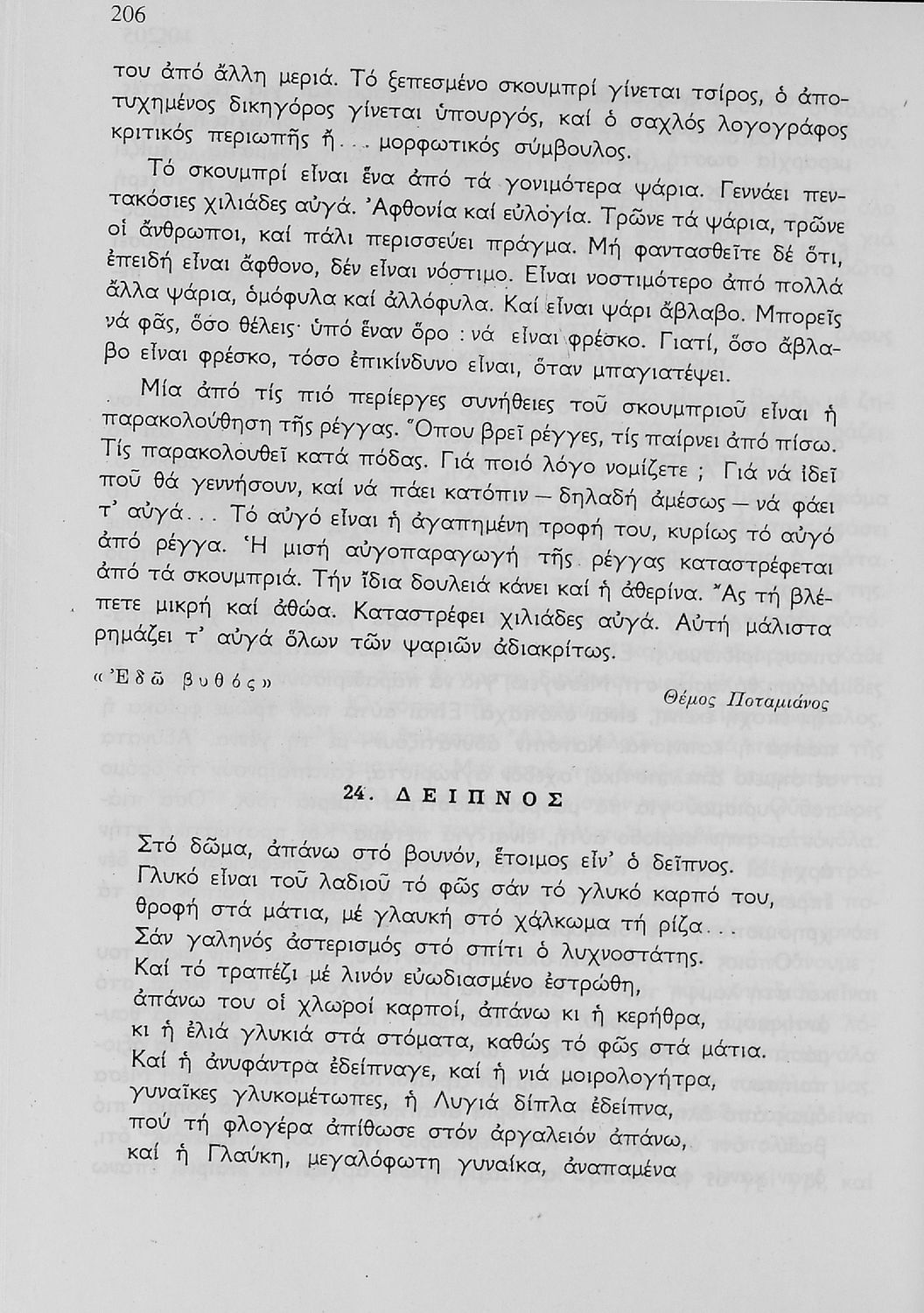 Σχολικό εγχειρίδιο Νέων Ελληνικών Γ΄ Γυμνασίου και Α' Αστικού Σχολείου που περιέχει πεζά και ποιήματα Ελλήνων συγγραφέων εμπνευσμένα από τη θρησκευτική και κοινωνική ζωή, την ελληνική μυθολογία, την αρχαία και