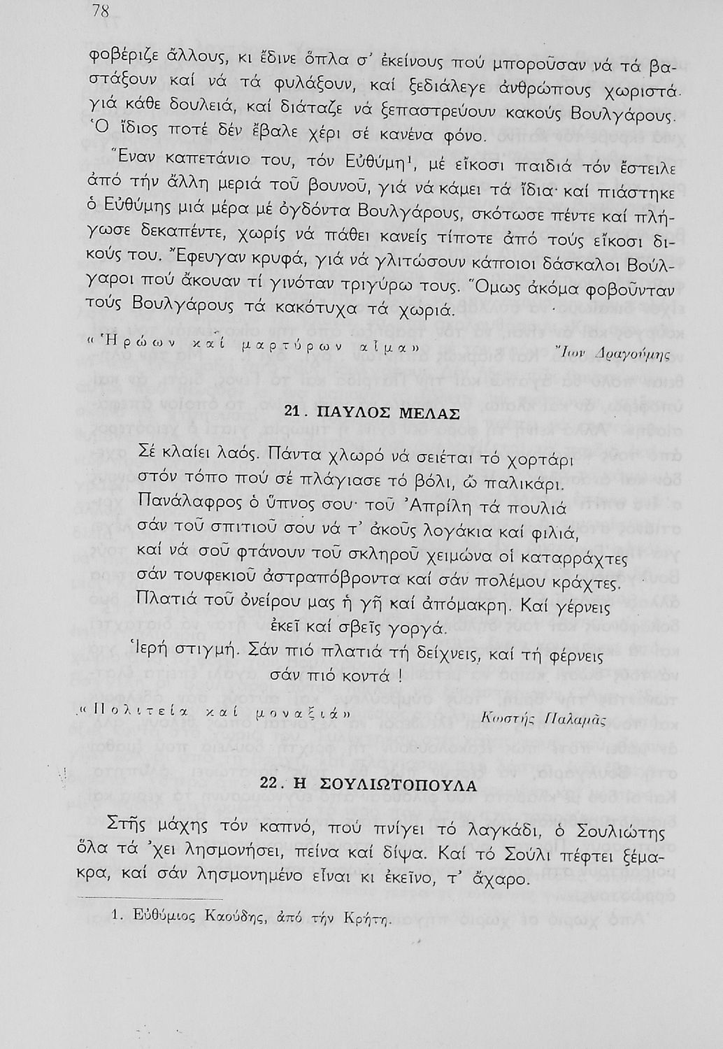 Σχετιζόμενοι όροι:  Παπαντωνίου, Πολέμης, Παλαμάς, Βηλαράς