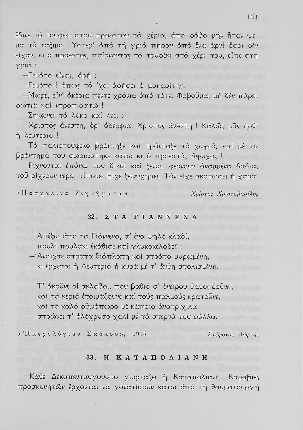 Σχολικό εγχειρίδιο Νέων Ελληνικών Γ΄ Γυμνασίου και Α' Αστικού Σχολείου που περιέχει πεζά και ποιήματα Ελλήνων συγγραφέων εμπνευσμένα από τη θρησκευτική και κοινωνική ζωή, την ελληνική μυθολογία, την αρχαία και