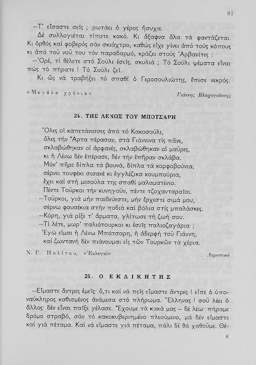 Σχετιζόμενοι όροι:  Παπαντωνίου, Πολέμης, Παλαμάς, Βηλαράς