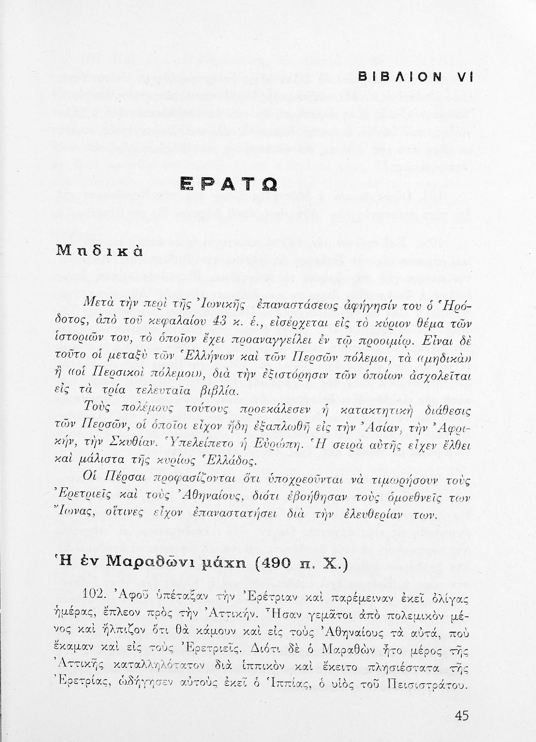 Σχολικό εγχειρίδιο Αρχαίων Ελληνικών Α΄ Γυμνασίου που περιλαμβάνει εισαγωγή στη ζωή και το έργο του Ηρόδοτου, και αποσπάσματα από τα 9 βιβλία της Ιστορίας του σε μετάφραση. Φέρει το σύμβολο της δικτατορίας.