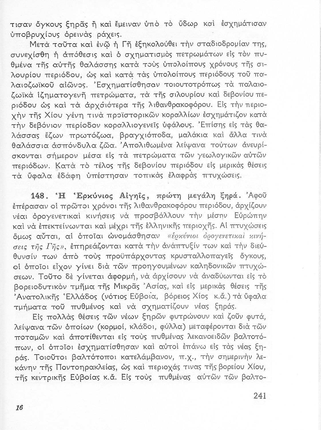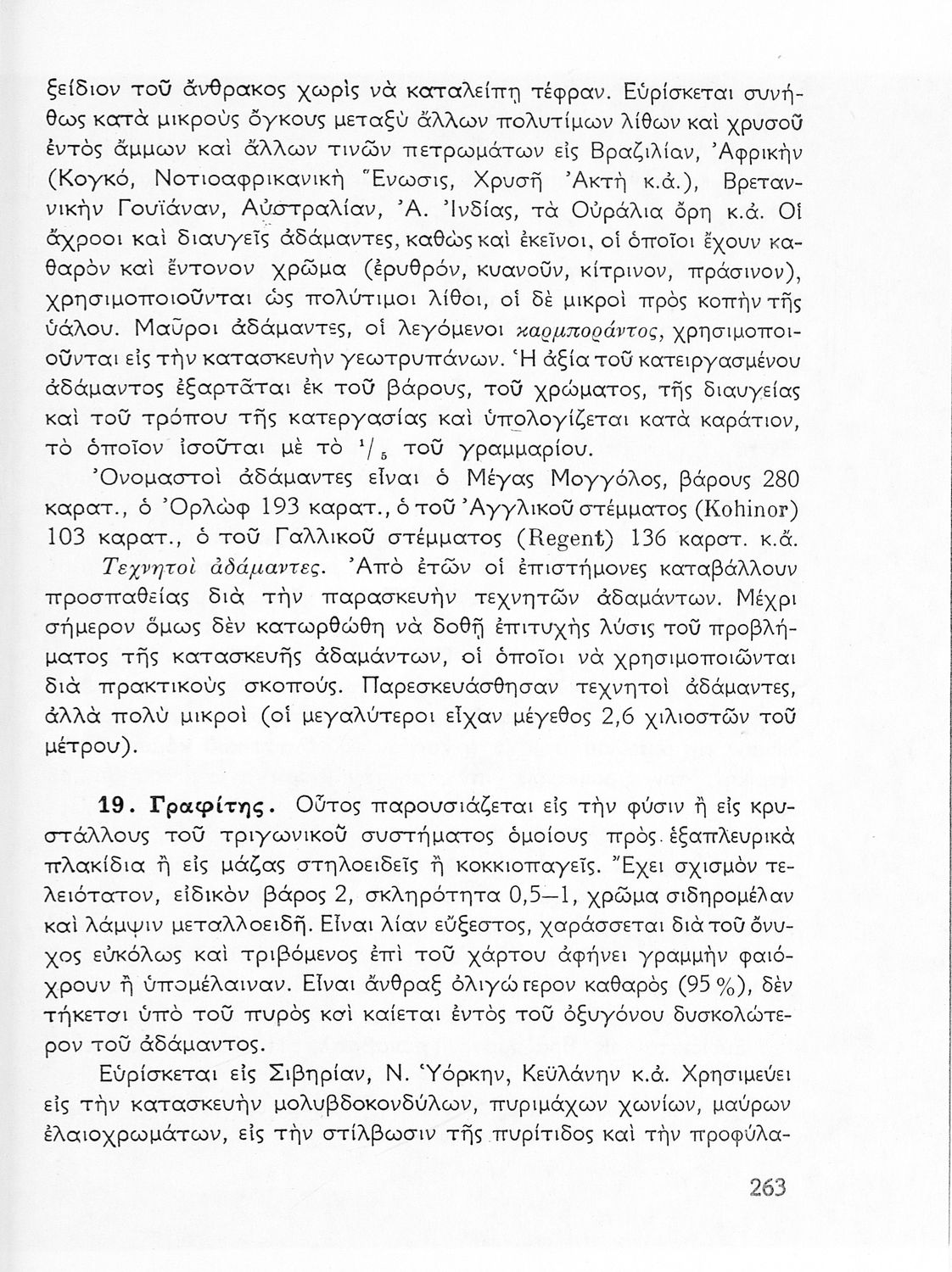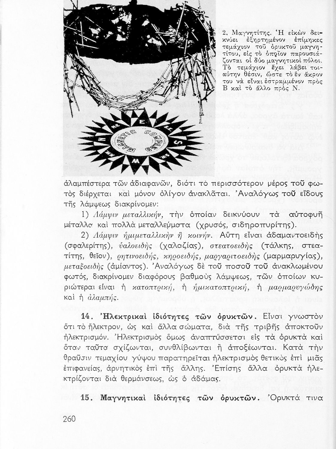 Σχολικό εγχειρίδιο Γεωλογίας/Ορυκτολογίας για την Δ΄ Γυμνασίου που περιλαμβάνει χθονογραφική, δυναμική και ιστορική γεωλογία, και γενική και ειδική ορυκτολογία. Ο συγγραφέας ήταν καθηγητής πανεπιστημίου και η συγγραφέας φυσικός. Περιέχει παράρτημα με «Στοιχεία Μαθηματικής Γεωγραφίας» από τη γεωγραφία Δ’ τάξης του Αλκίνοου Μάζη (εκδ 1963).