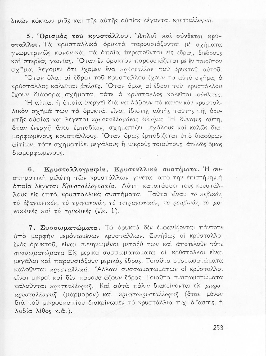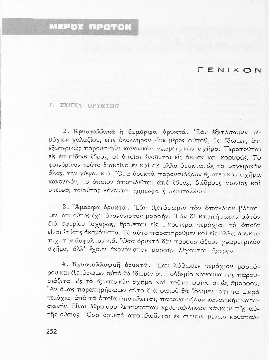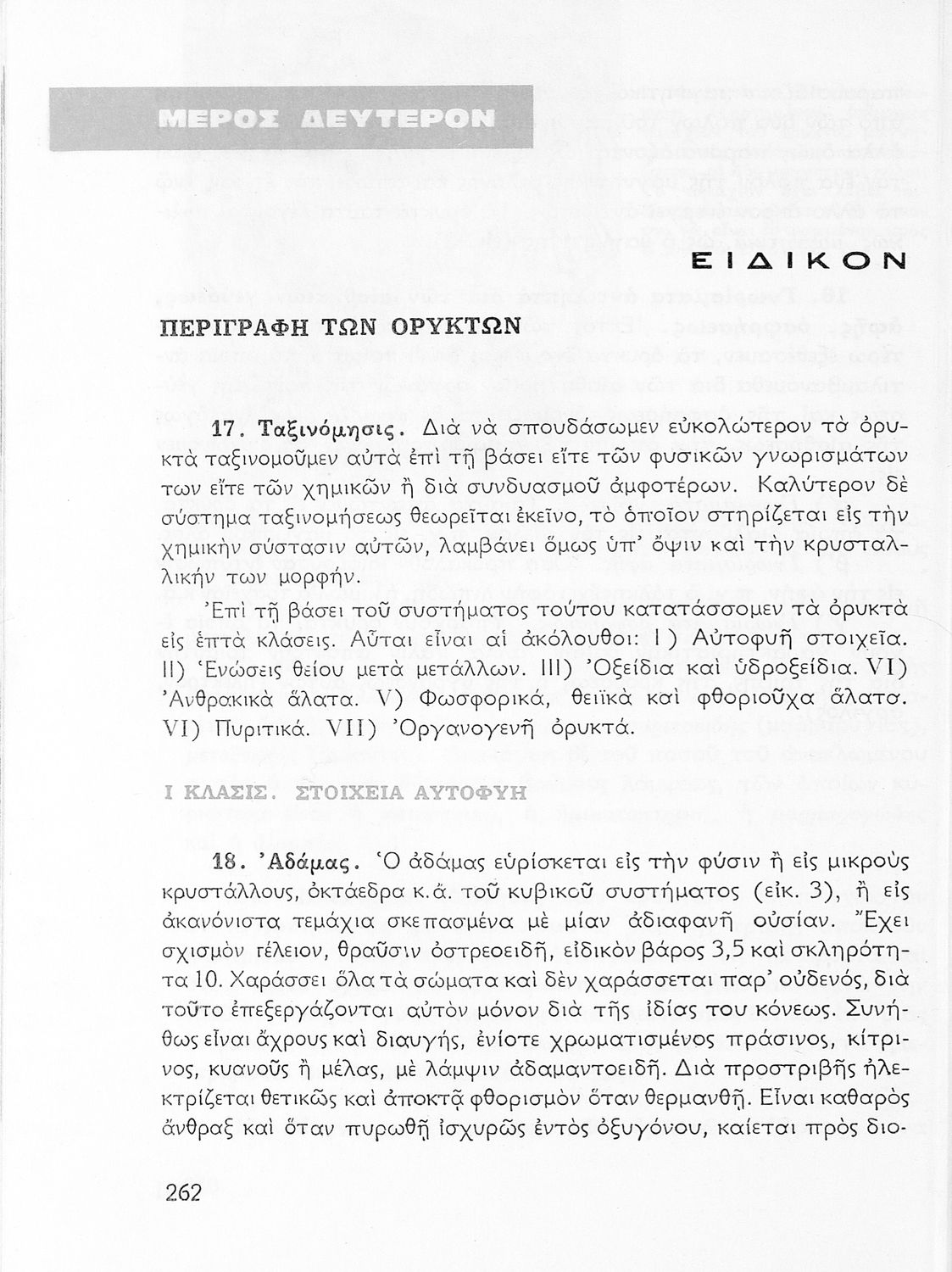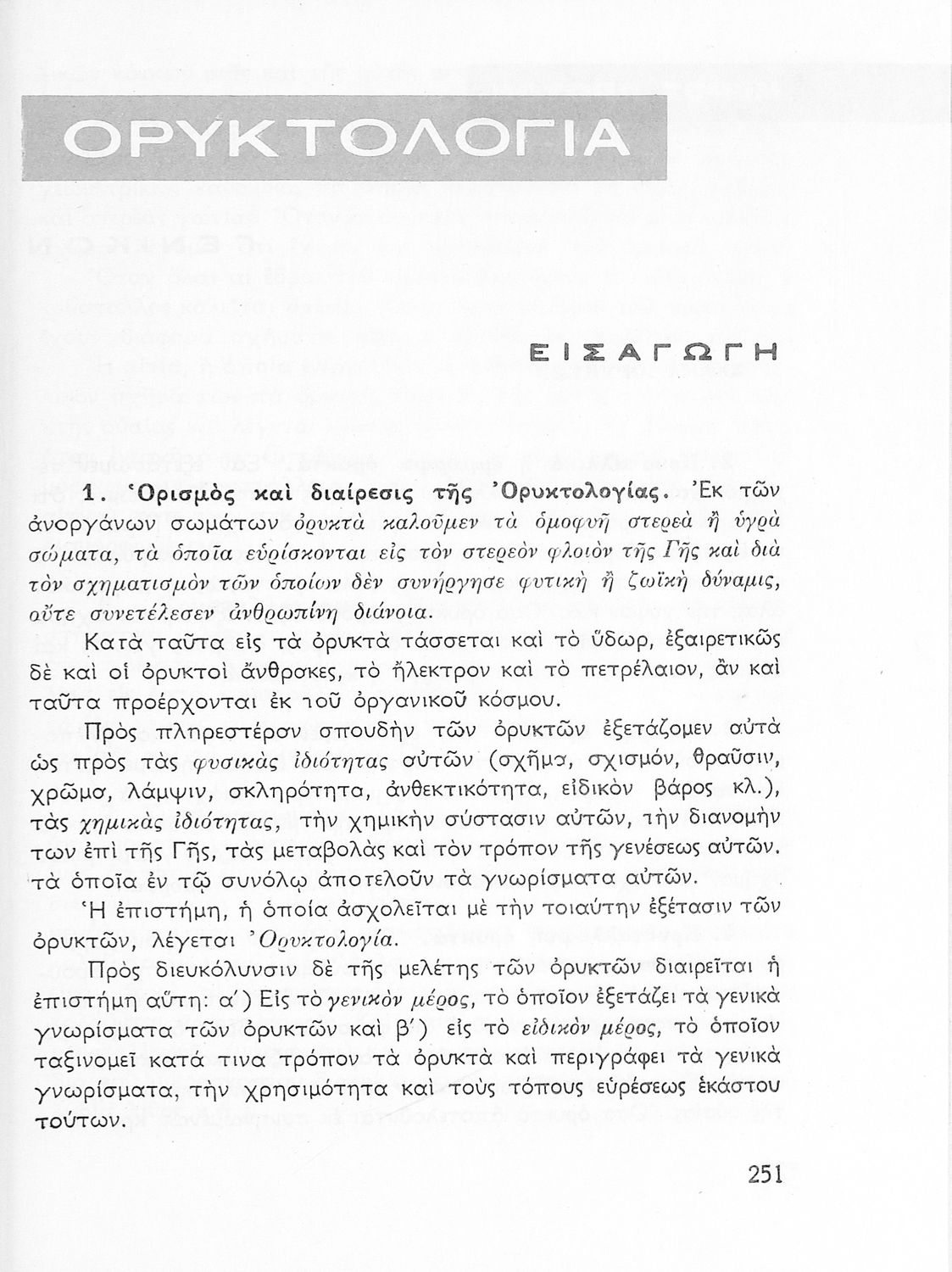 Βιβλίο Γεωλογίας/Ορυκτολογίας για την Δ΄ τάξη των Εξαταξίων Γυμνασίων που παρουσιάζει τα ορυκτά με βάση την κλάση στην οποία ανήκουν. Το τμήμα της γεωλογίας εστιάζει στους γεωλογικούς αιώνες, Ο συγγραφέας ήταν