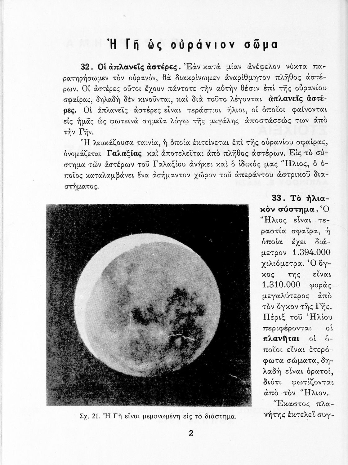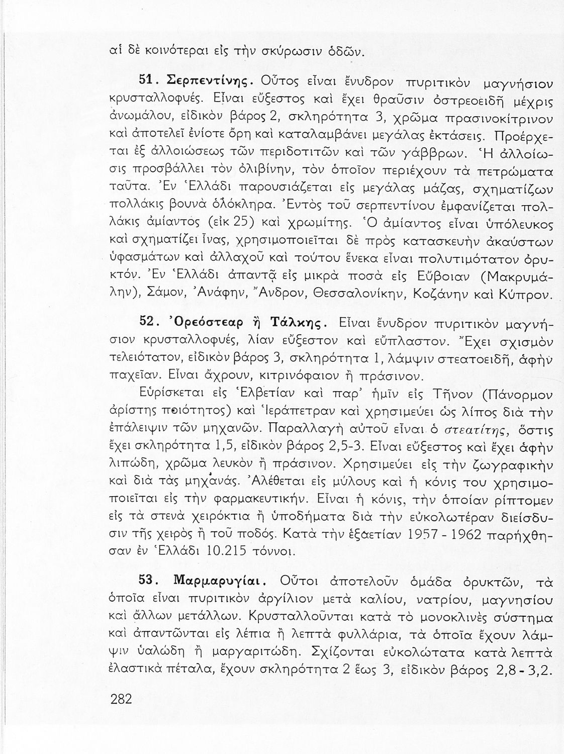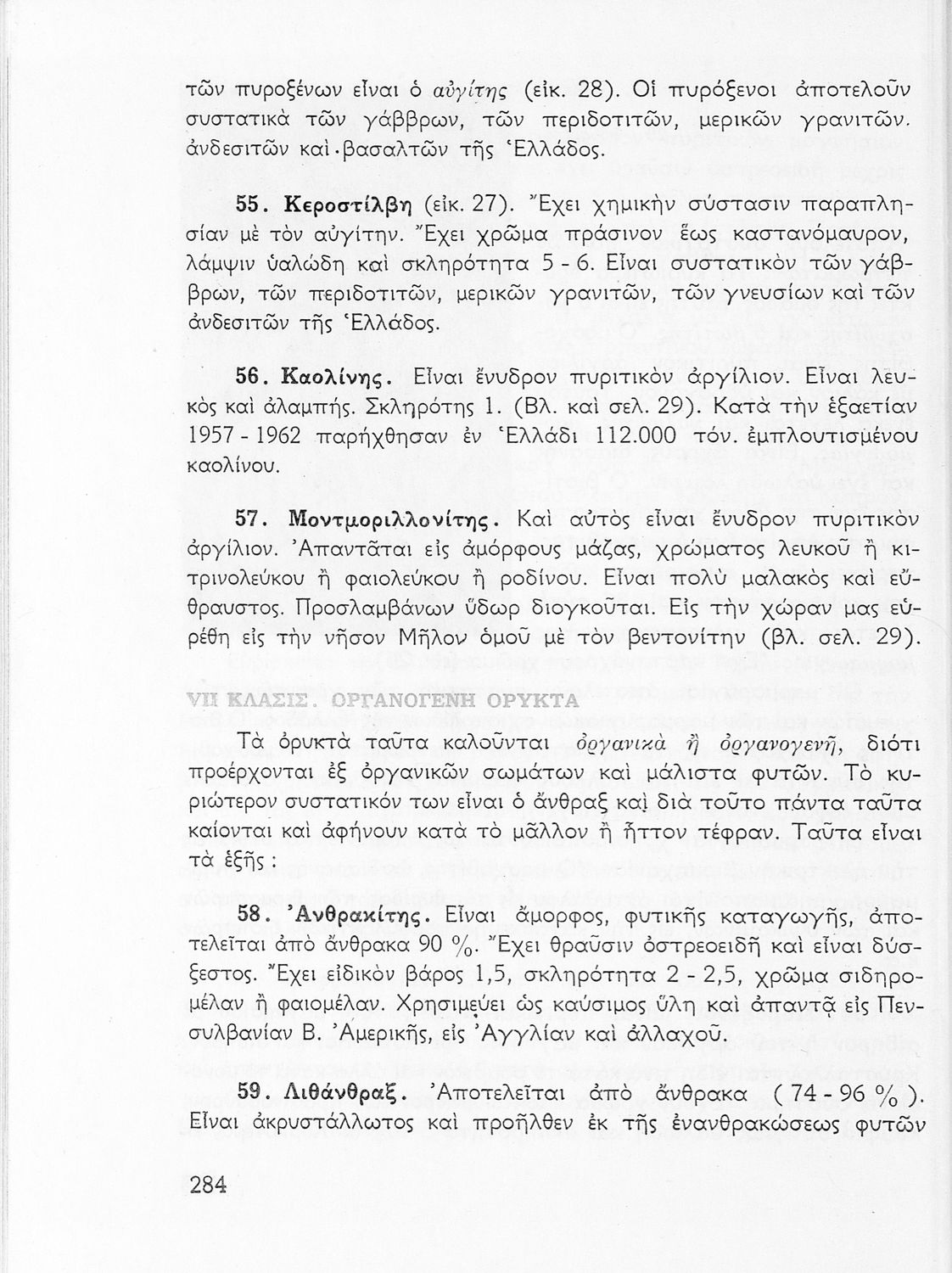 Σχολικό εγχειρίδιο Γεωλογίας/Ορυκτολογίας για την Δ΄ Γυμνασίου που περιλαμβάνει χθονογραφική, δυναμική και ιστορική γεωλογία, και γενική και ειδική ορυκτολογία. Ο συγγραφέας ήταν καθηγητής πανεπιστημίου και η συγγραφέας φυσικός. Περιέχει παράρτημα με «Στοιχεία Μαθηματικής Γεωγραφίας» από τη γεωγραφία Δ’ τάξης του Αλκίνοου Μάζη (εκδ 1963).