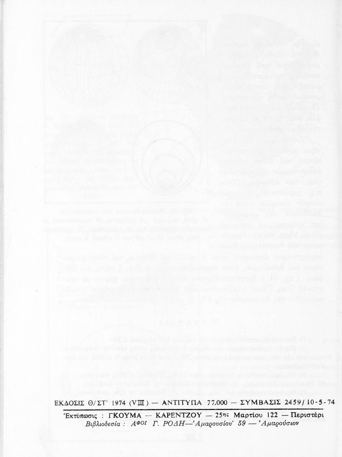 Εκδότης: Οργανισμός Εκδόσεως Διδακτικών Βιβλίων Έτος έκδοσης: 1974 Τόπος έκδοσης: Αθήνα Έκδοση: 8η Υπουργική απόφαση / Σύμβαση: 2459/10-5-1974 Έτος έγκρισης: 1974 |