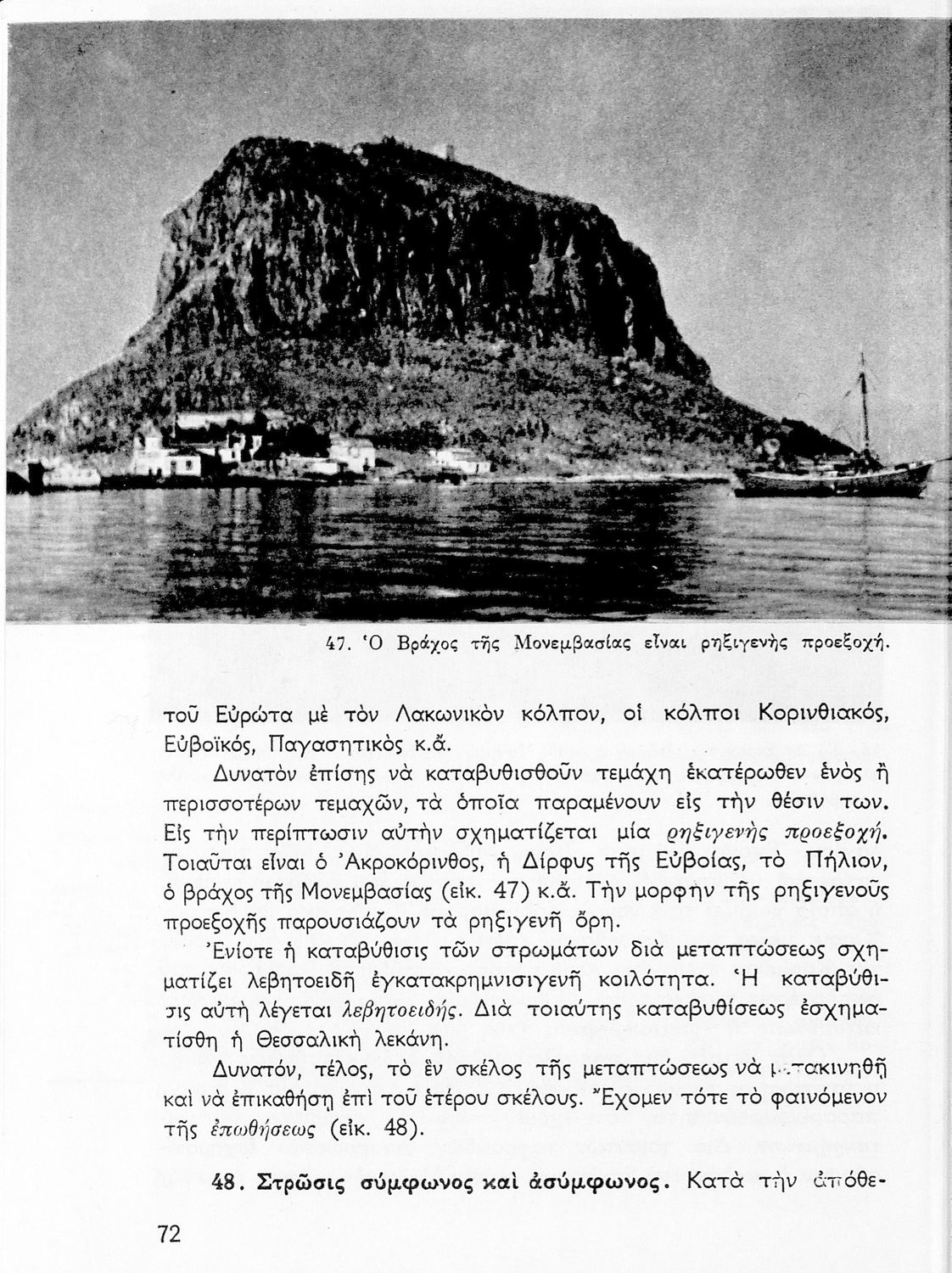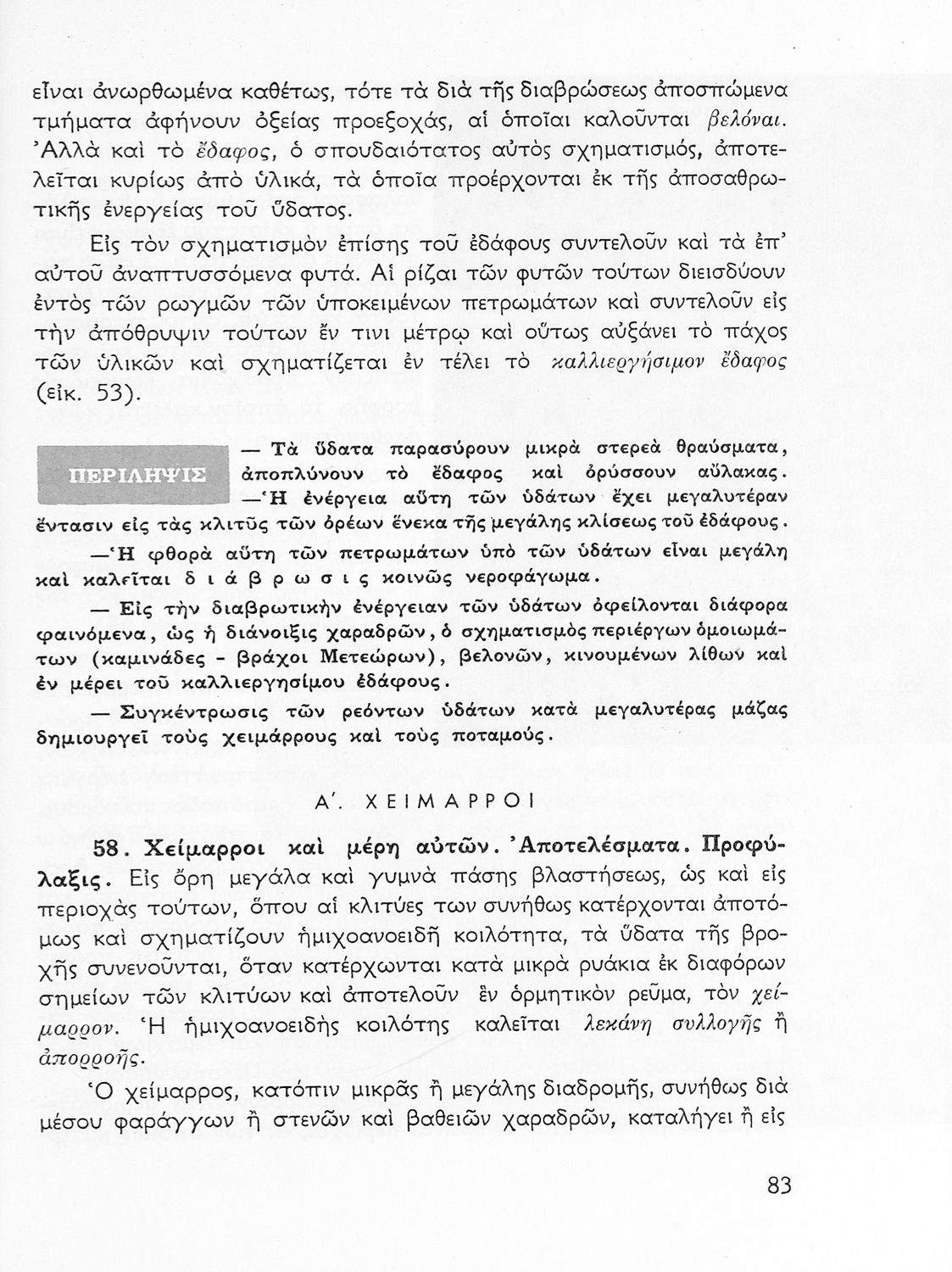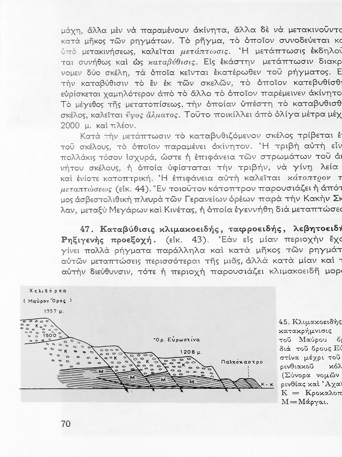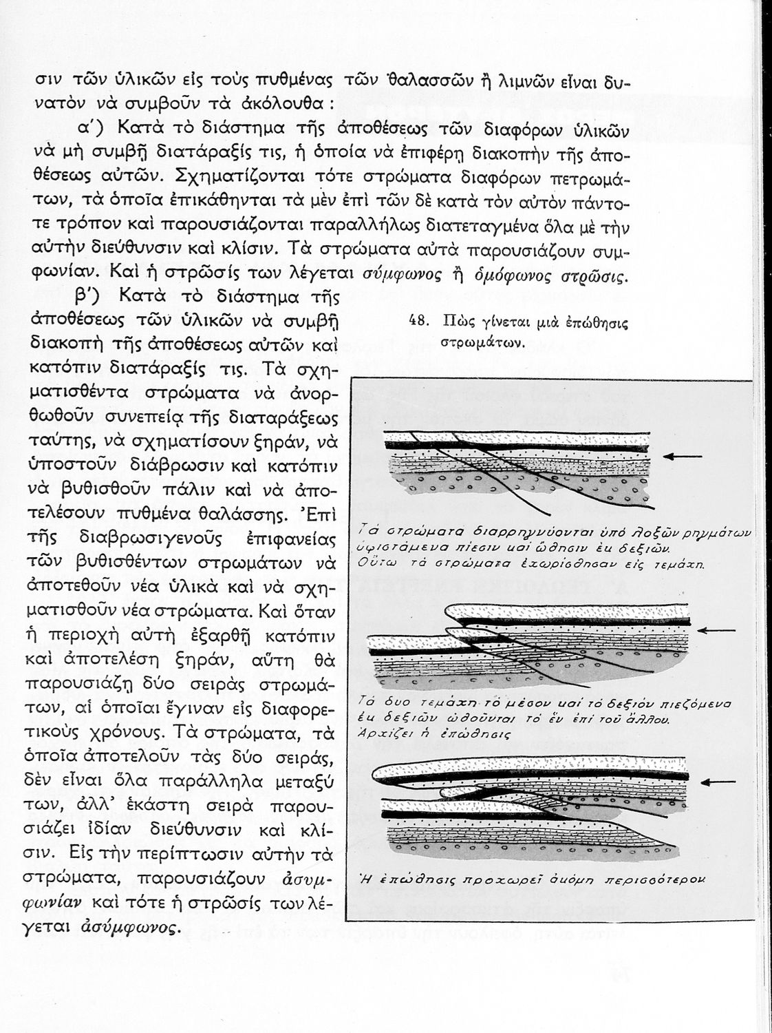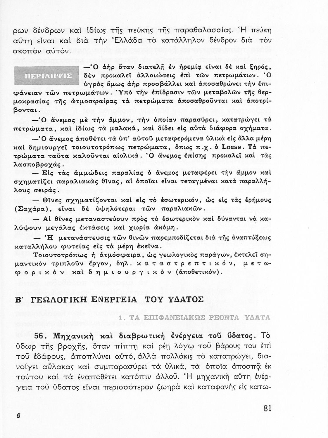 Σχολικό εγχειρίδιο Γεωλογίας/Ορυκτολογίας για την Δ΄ Γυμνασίου που περιλαμβάνει χθονογραφική, δυναμική και ιστορική γεωλογία, και γενική και ειδική ορυκτολογία. Ο συγγραφέας ήταν καθηγητής πανεπιστημίου και η συγγραφέας φυσικός. Περιέχει παράρτημα με «Στοιχεία Μαθηματικής Γεωγραφίας» από τη γεωγραφία Δ’ τάξης του Αλκίνοου Μάζη (εκδ 1963).