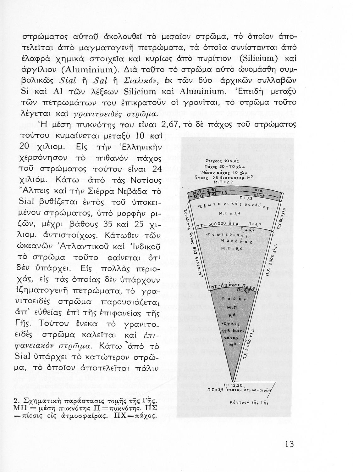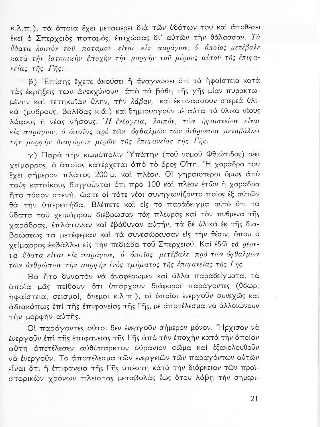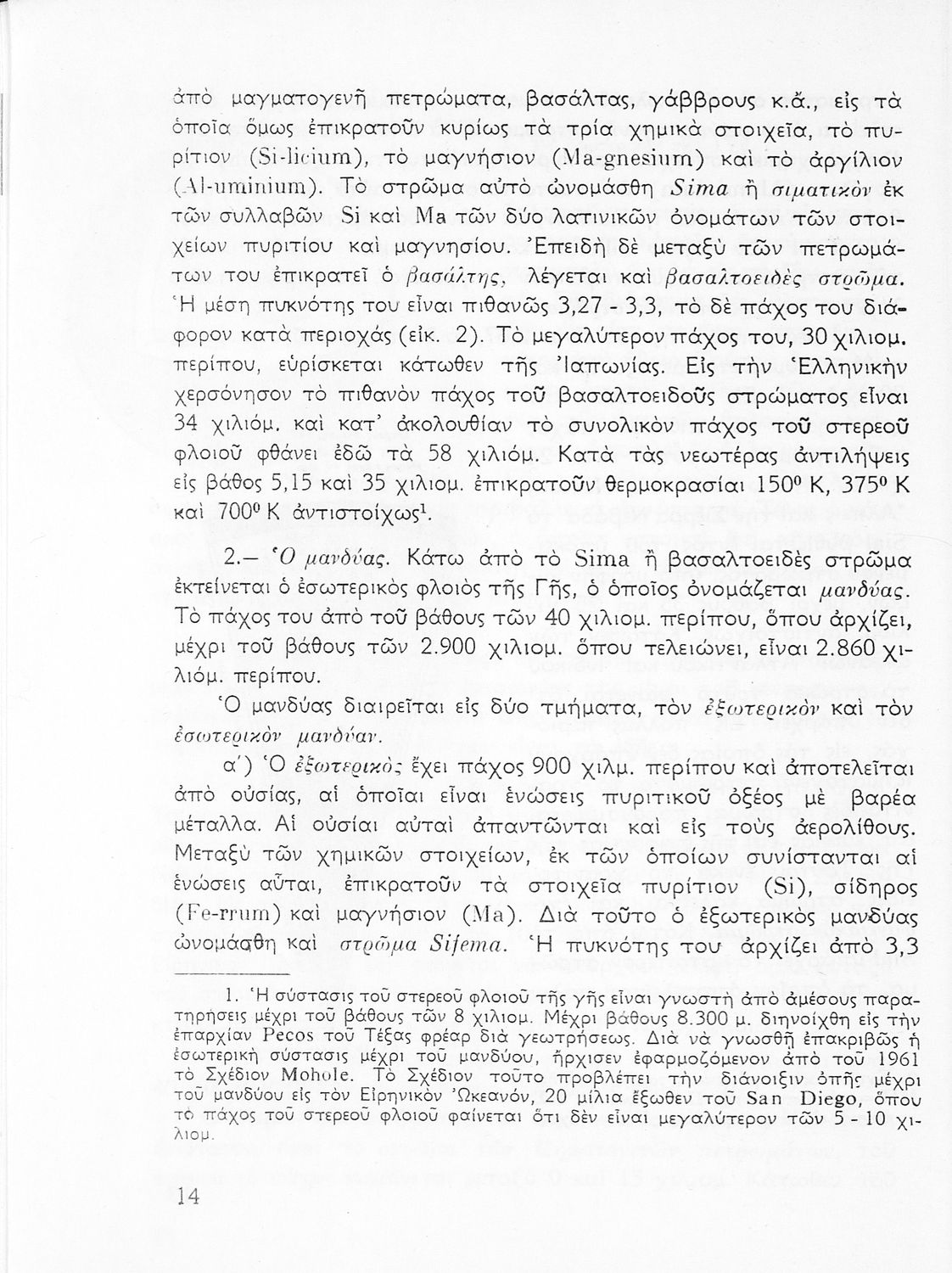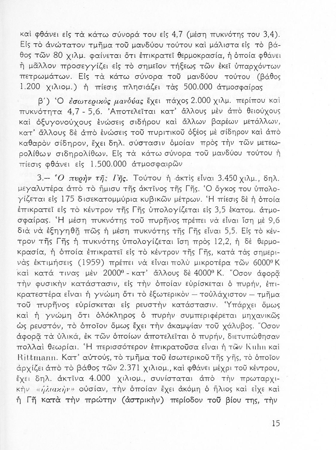 Σχολικό εγχειρίδιο Γεωλογίας/Ορυκτολογίας για την Δ΄ Γυμνασίου που περιλαμβάνει χθονογραφική, δυναμική και ιστορική γεωλογία, και γενική και ειδική ορυκτολογία. Ο συγγραφέας ήταν καθηγητής πανεπιστημίου και η συγγραφέας φυσικός. Περιέχει παράρτημα με «Στοιχεία Μαθηματικής Γεωγραφίας» από τη γεωγραφία Δ’ τάξης του Αλκίνοου Μάζη (εκδ 1963).