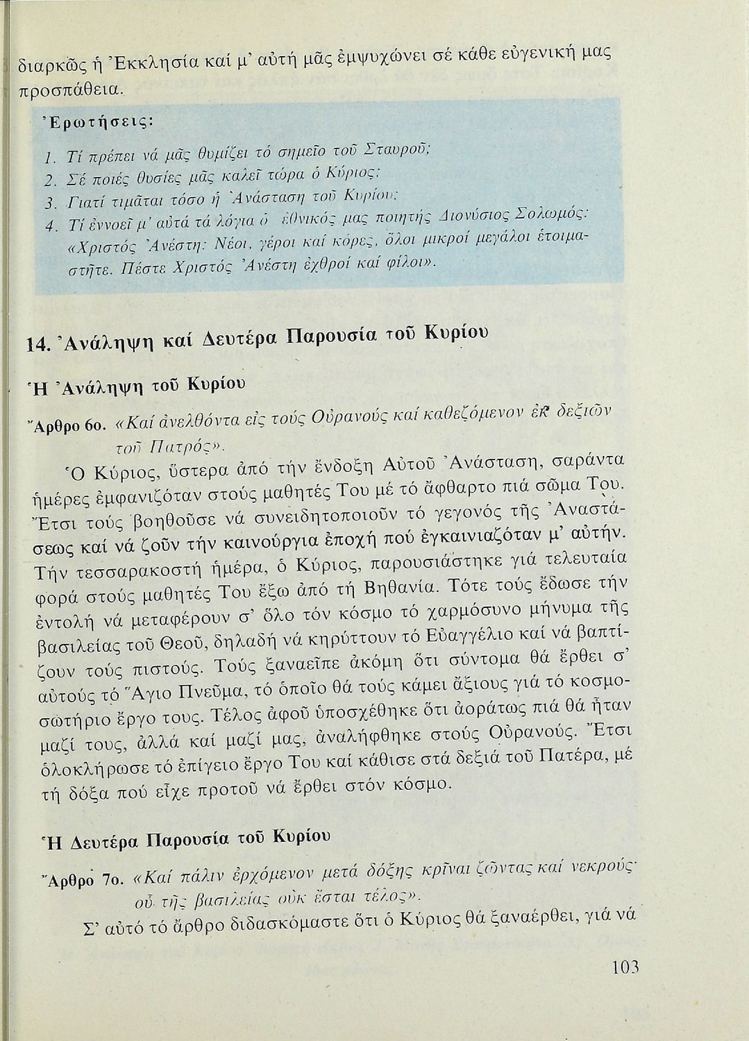 Μαθητικό βοήθημα Θρησκευτικών για την ΣΤ΄ Δημοτικού. Στο βιβλίο υπάρχουν στοιχεία Θρησκειολογίας. Στο τελευταίο μέρος του βιβλίου περιέχονται εκκλησιαστικοί ύμνοι για τις γιορτές.