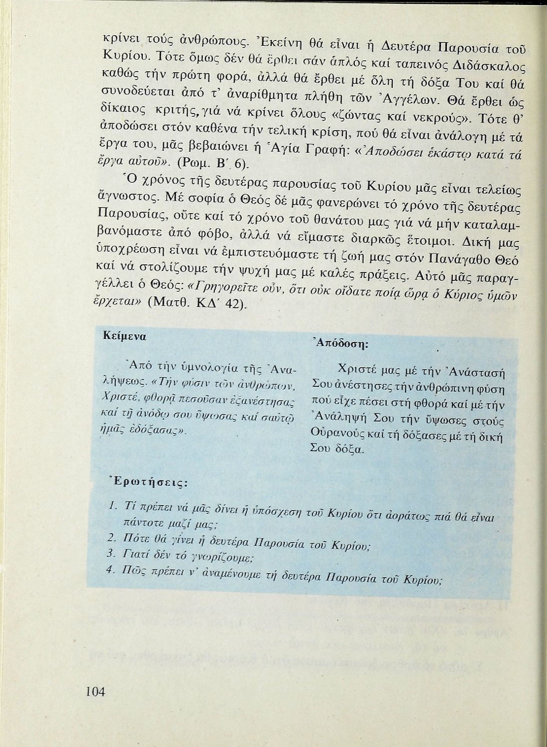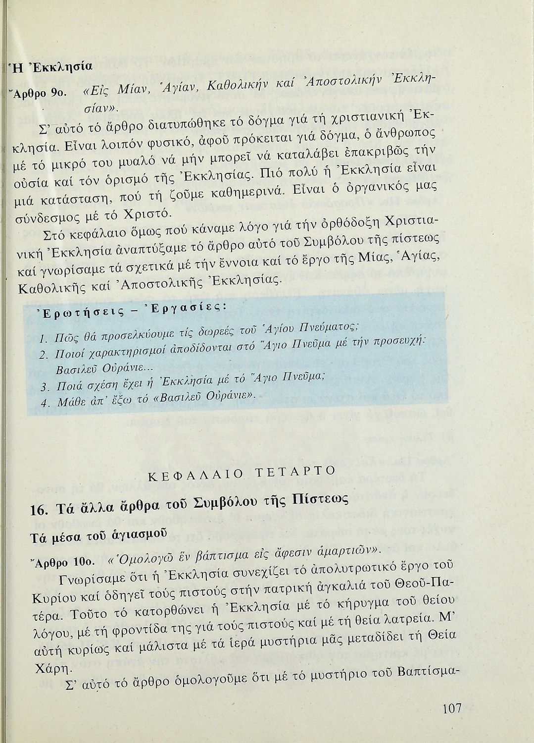Σχολικό εγχειρίδιο Θρησκευτικών ΣΤ΄ Δημοτικού περιλαμβάνει εισαγωγή στο Χριστιανισμό και εστιάζει στο δογματικό, ηθικό και το λειτουργικό μέρος της ορθόδοξης χριστιανικής κατήχησης.