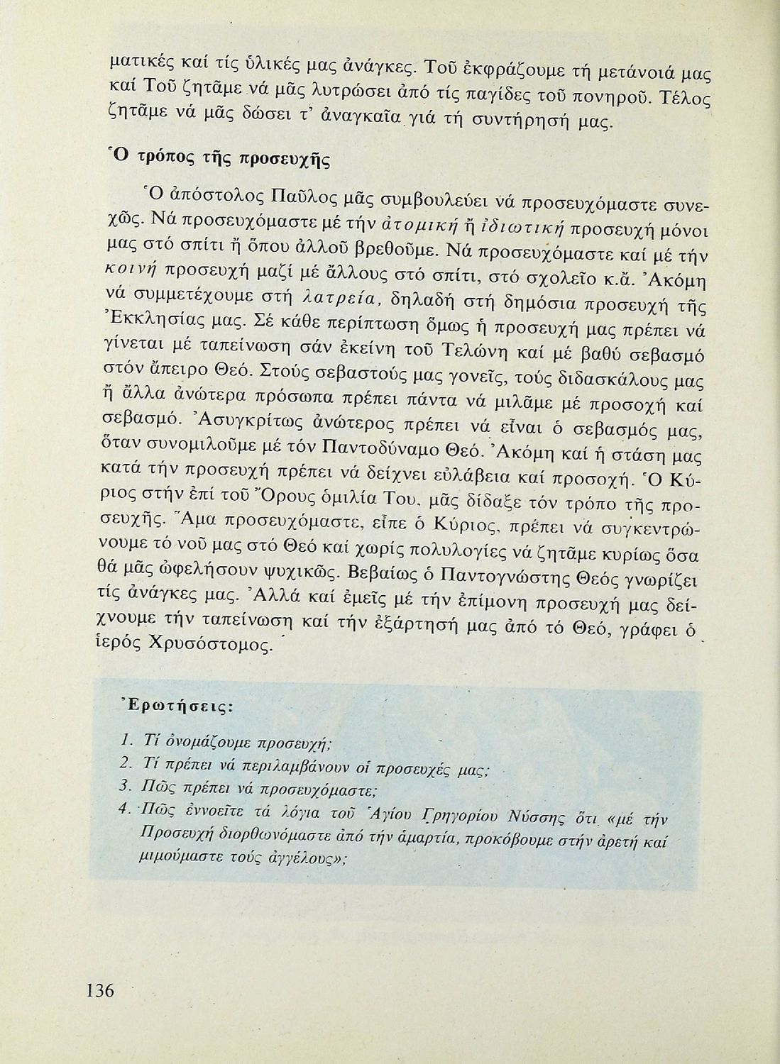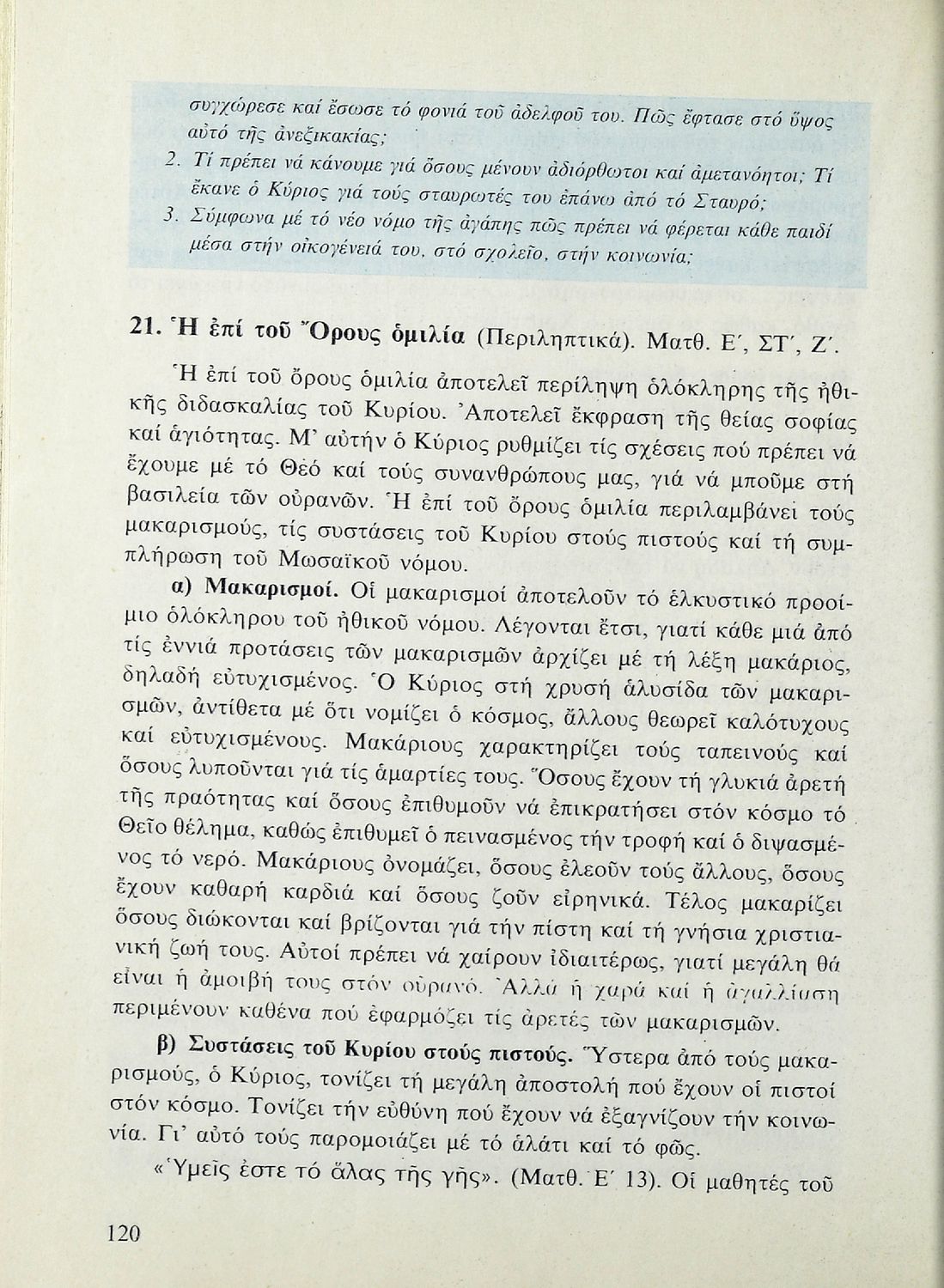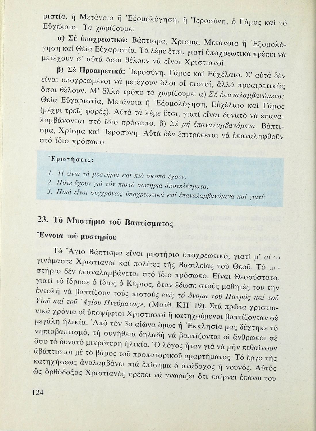Σχολικό εγχειρίδιο Θρησκευτικών ΣΤ΄ Δημοτικού περιλαμβάνει εισαγωγή στο Χριστιανισμό και εστιάζει στο δογματικό, ηθικό και το λειτουργικό μέρος της ορθόδοξης χριστιανικής κατήχησης.