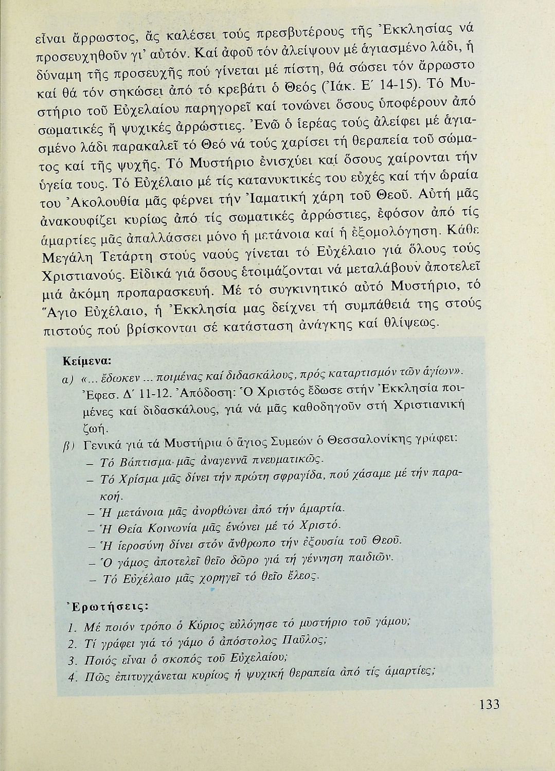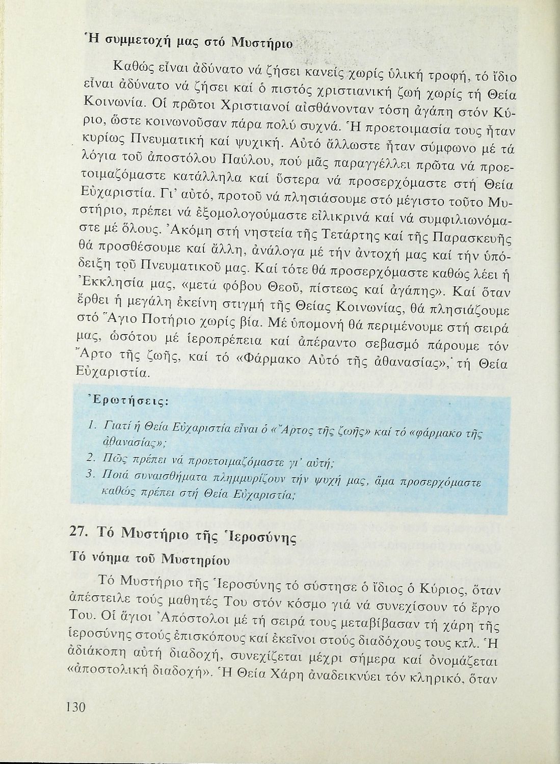 Λειτουργική και κατήχηση για την ΣΤ΄ τάξη του Δημοτικού Σχολείου
