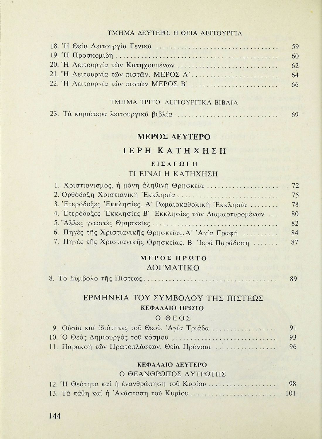 Σχολικό εγχειρίδιο Θρησκευτικών ΣΤ΄ Δημοτικού που αναλύει την έννοια της κατήχησης με έμφαση στο ορθόδοξο χριστιανικό δόγμα, το οποίο εξετάζει από δογματική και ηθική σκοπιά. Περιλαμβάνει και στοιχεία ...