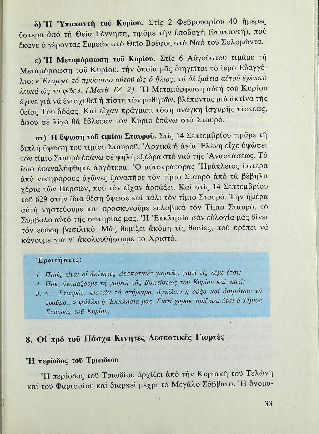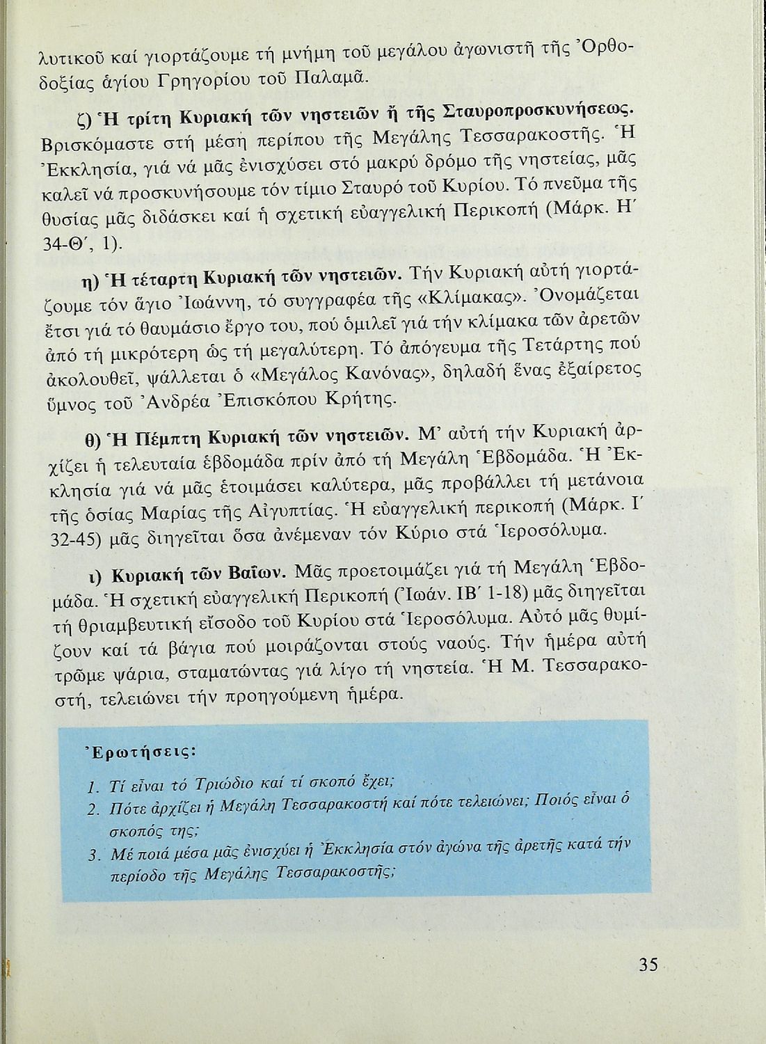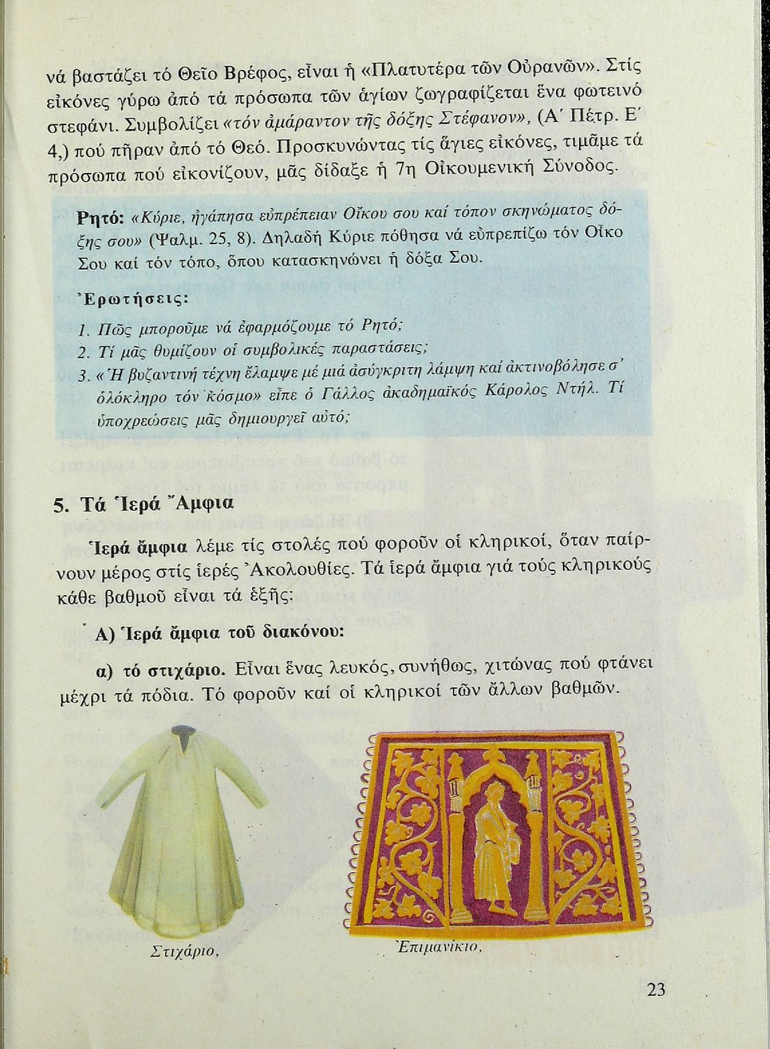 Λειτουργική και κατήχηση για την ΣΤ΄ τάξη του Δημοτικού Σχολείου