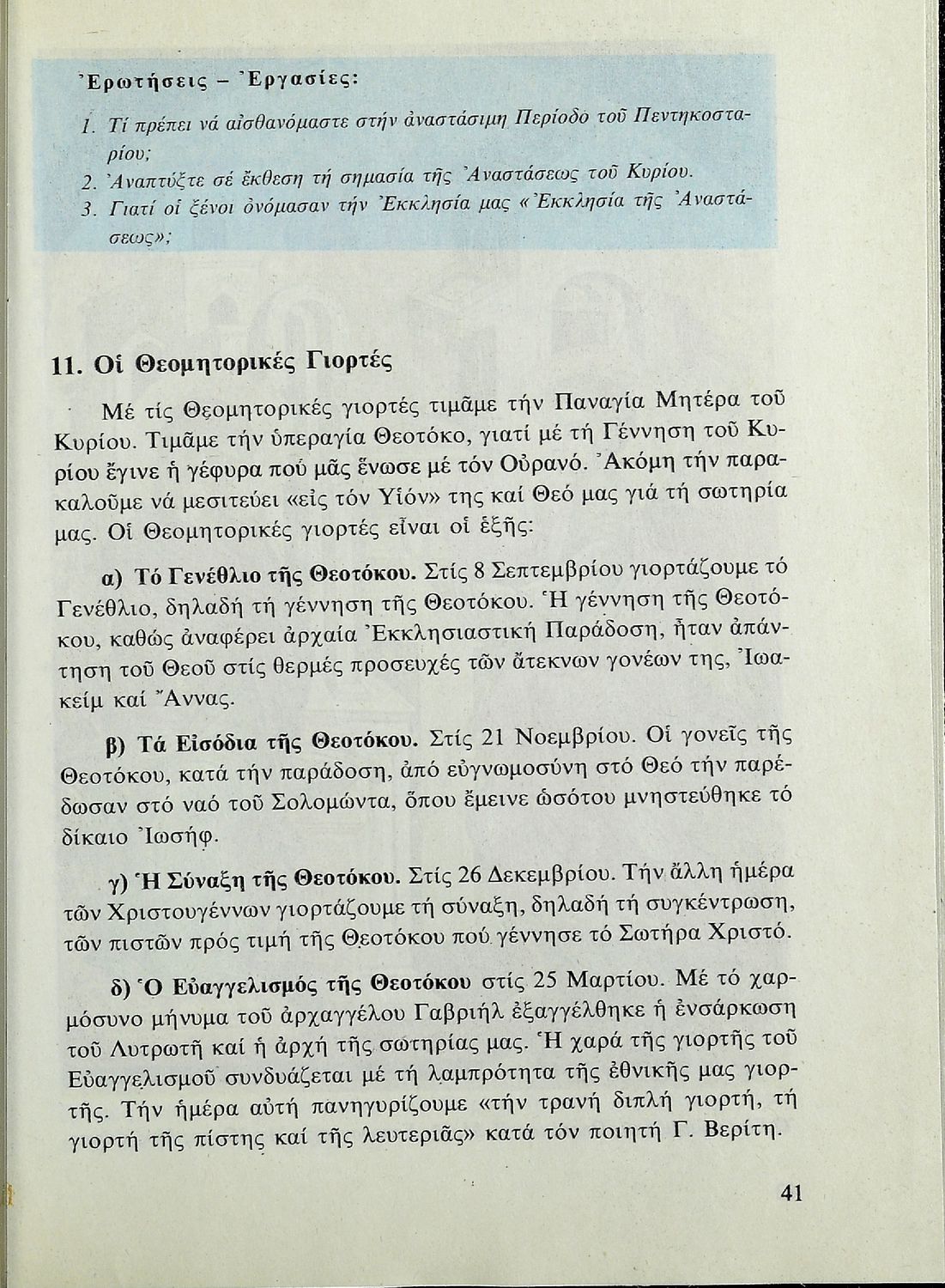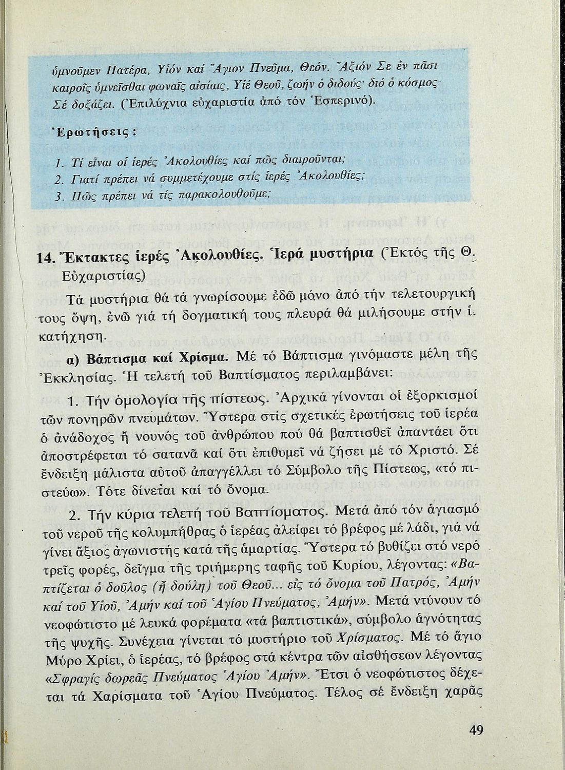 Λειτουργική και κατήχηση για την ΣΤ΄ τάξη του Δημοτικού Σχολείου