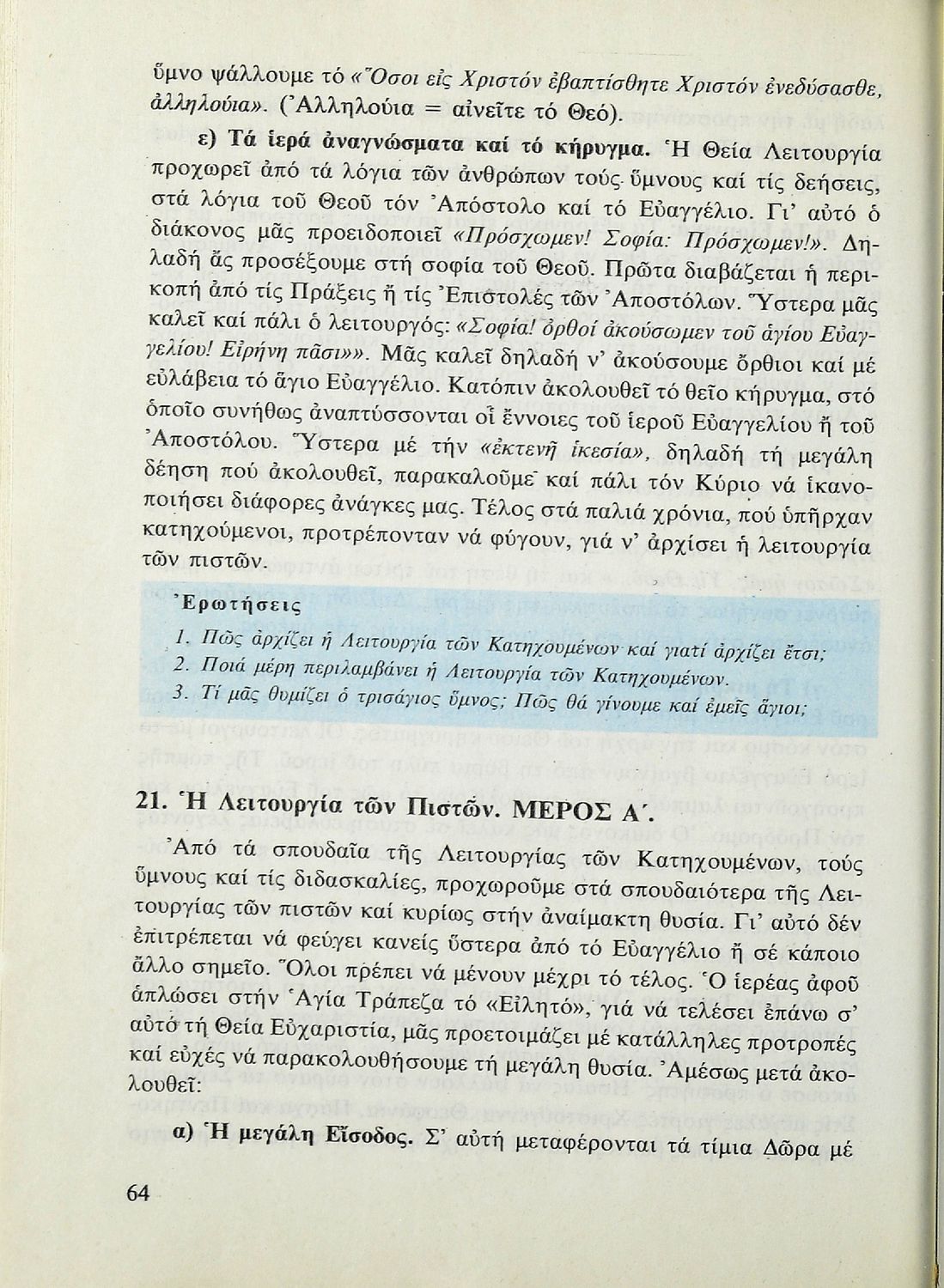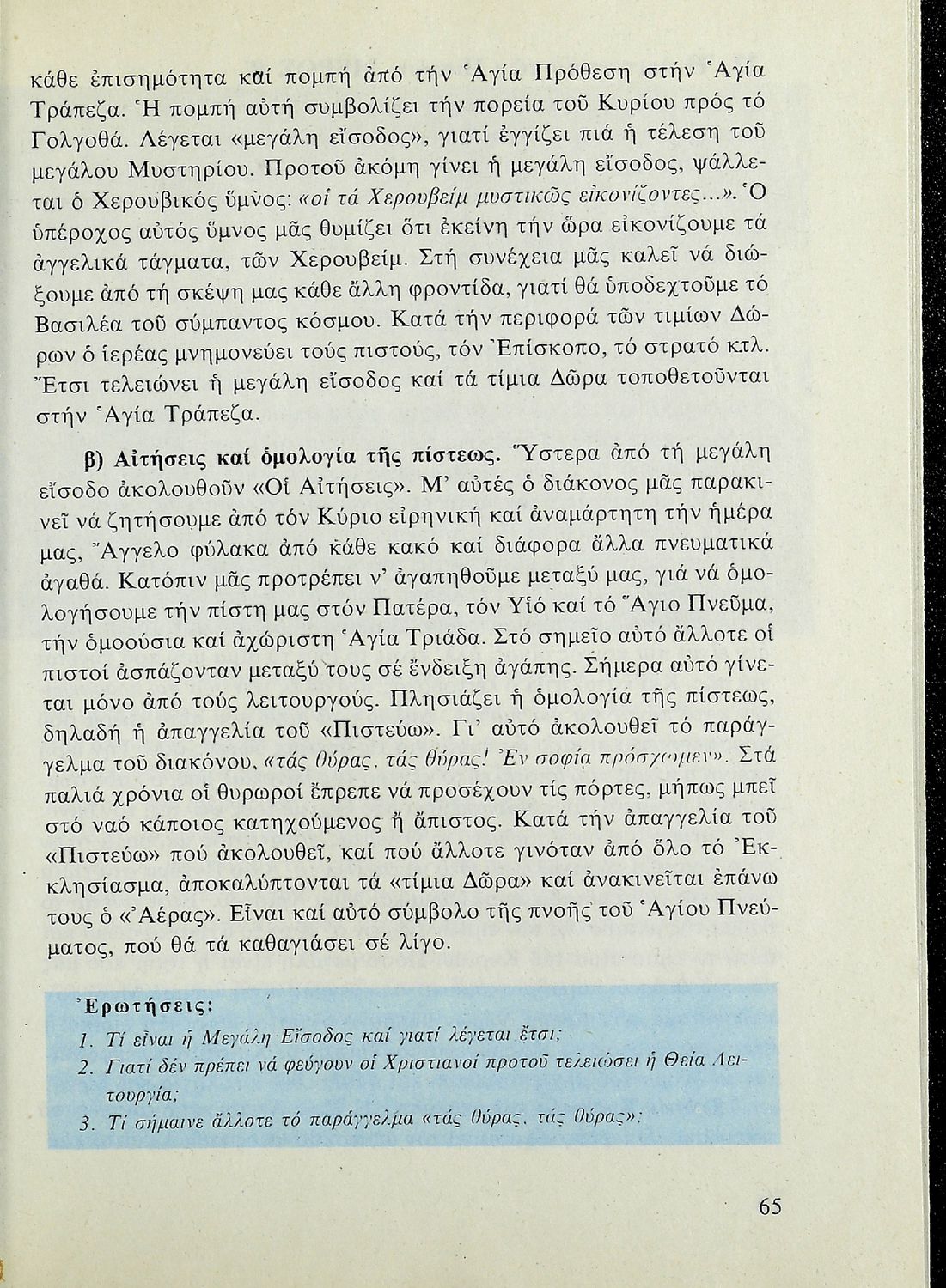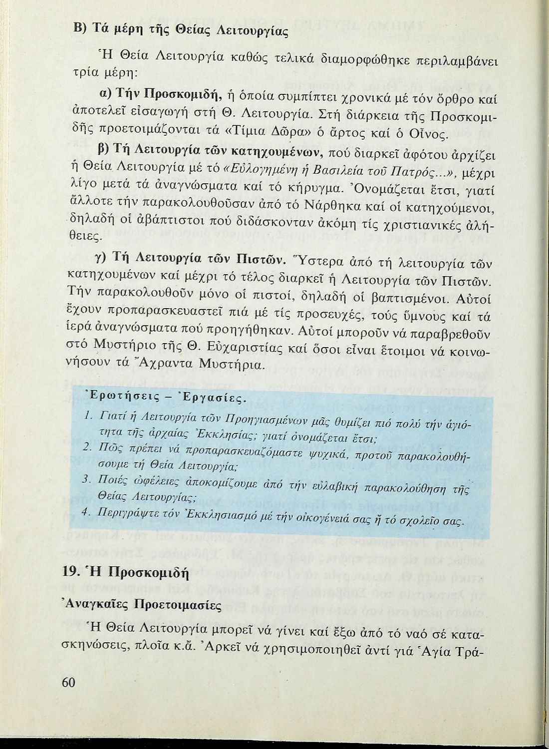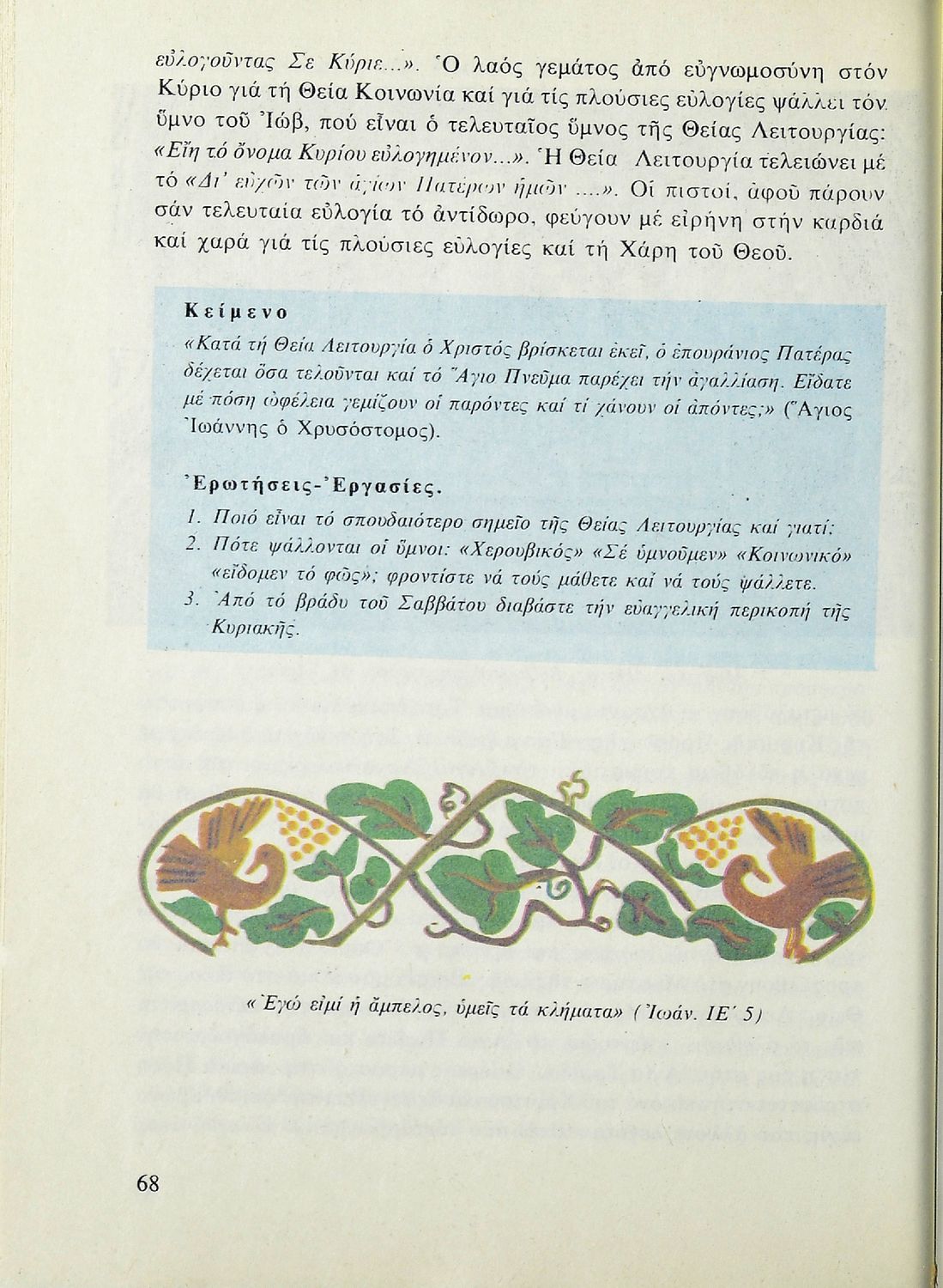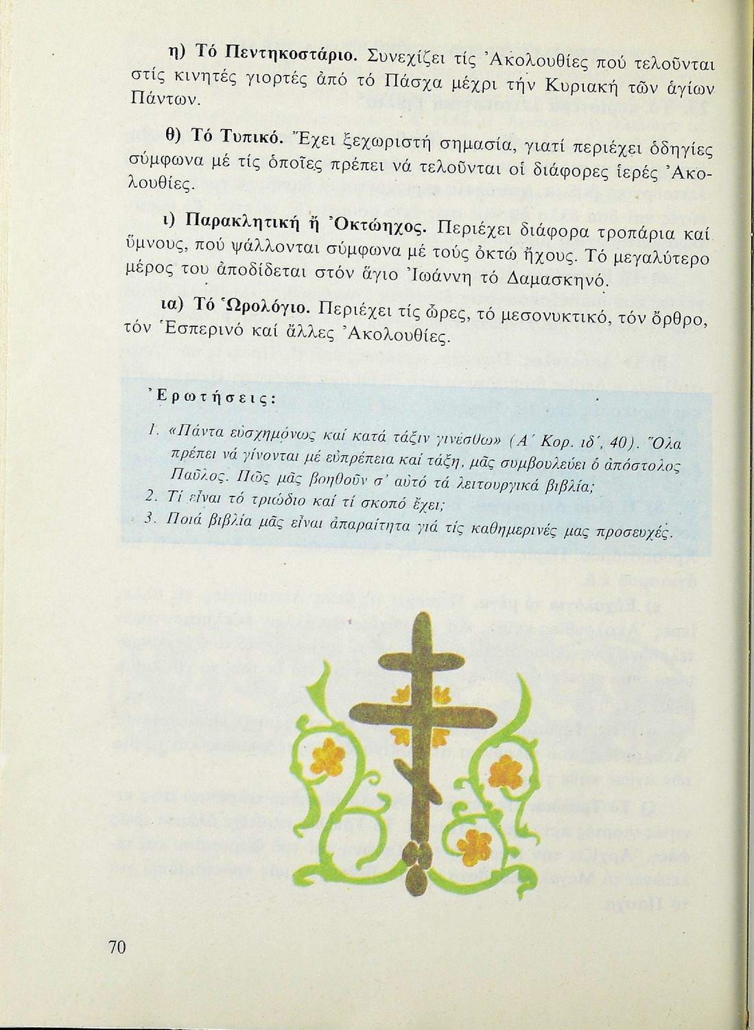 Λειτουργική και κατήχηση για την ΣΤ΄ τάξη του Δημοτικού Σχολείου