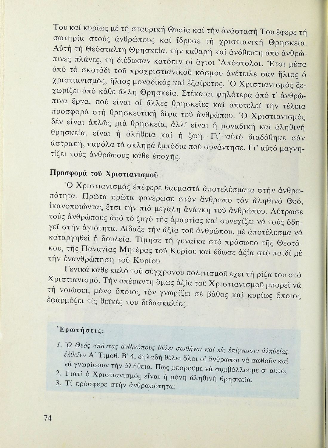 Σχολικό εγχειρίδιο Θρησκευτικών ΣΤ΄ Δημοτικού περιλαμβάνει εισαγωγή στο Χριστιανισμό και εστιάζει στο δογματικό, ηθικό και το λειτουργικό μέρος της ορθόδοξης χριστιανικής κατήχησης.