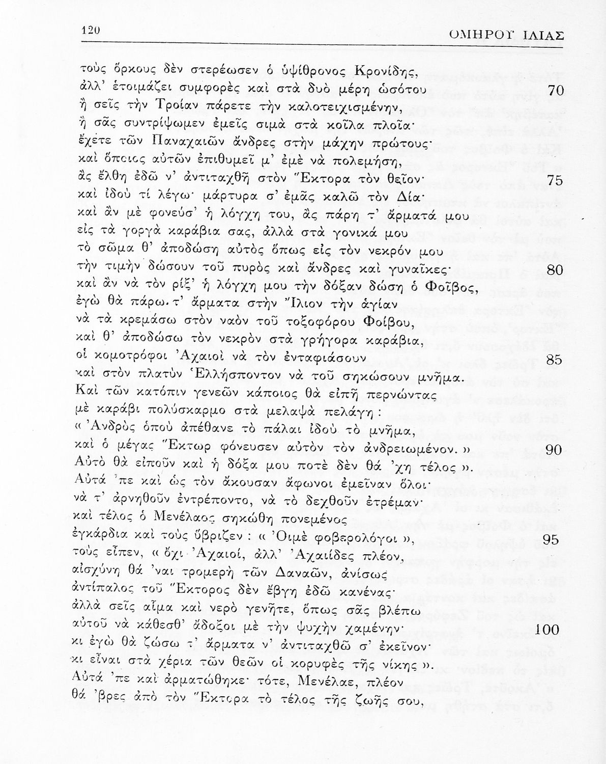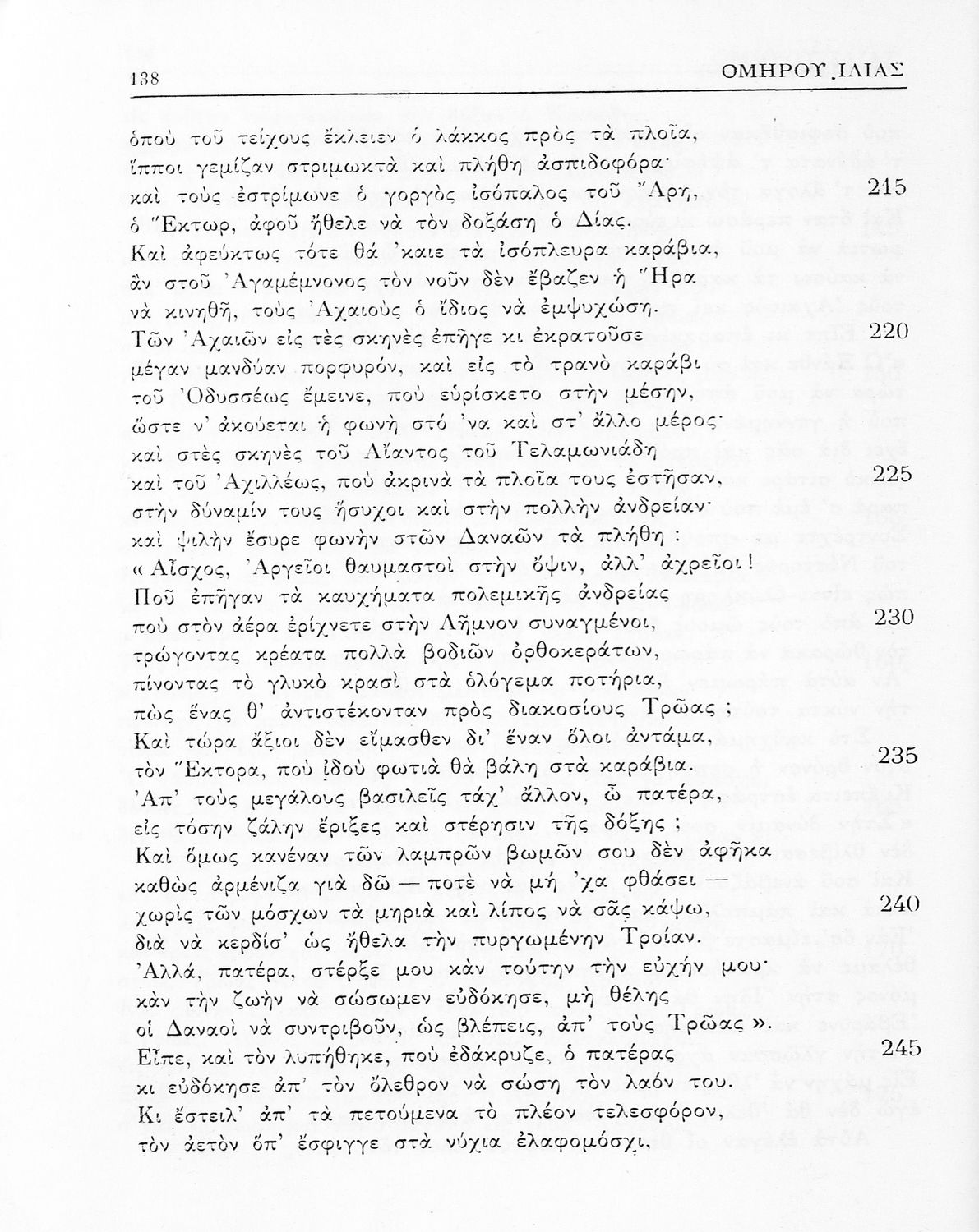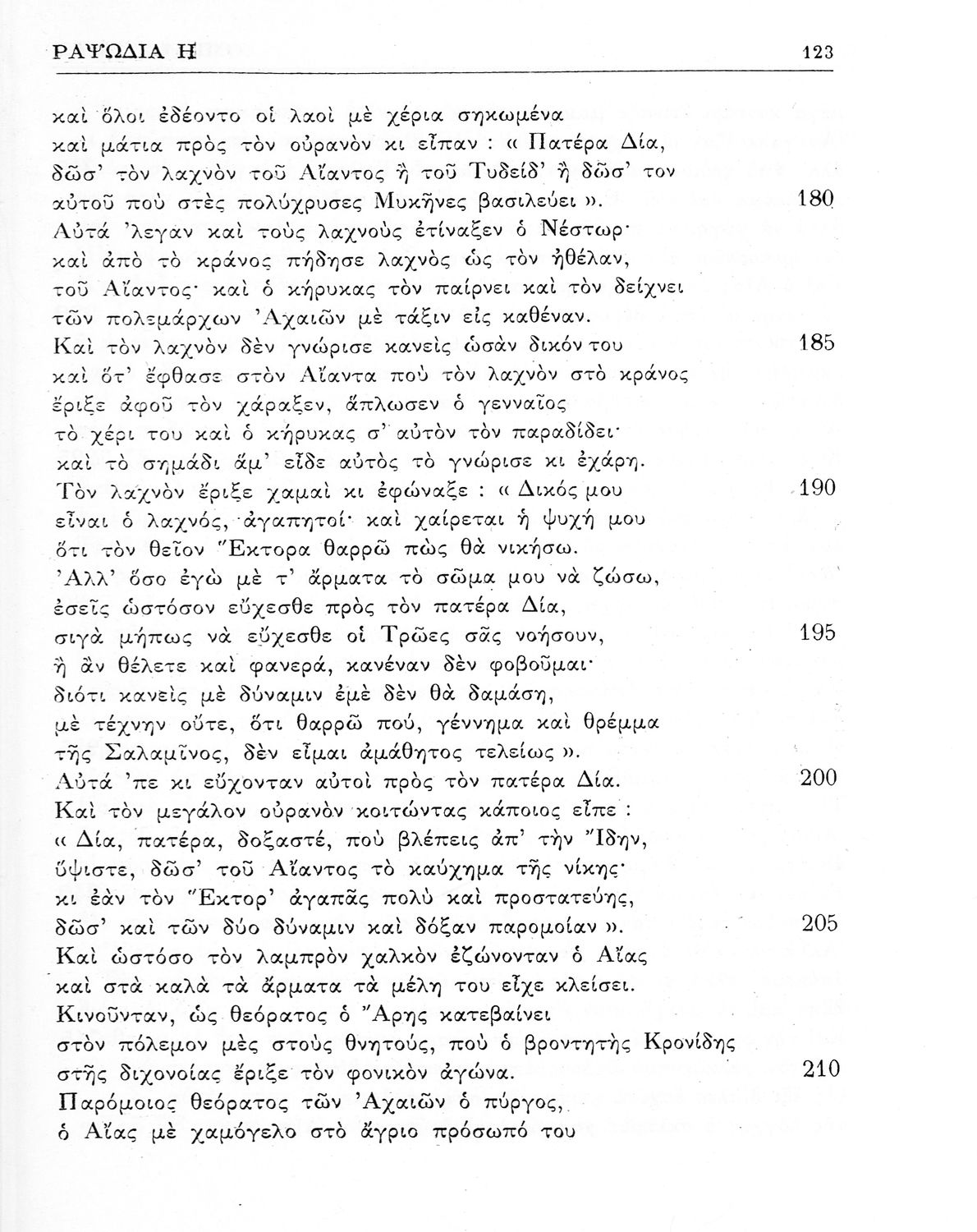 Σχολικό εγχειρίδιο της Δευτεροβάθμιας Εκπαίδευσης για το μάθημα των Αρχαίων Ελληνικών. Πρόκειται για το κείμενο της Ιλιάδας μεταφρασμένο, με πραγματολογικές παρατηρήσεις. Στο τέλος περιλαμβάνει λεξιλόγιο.