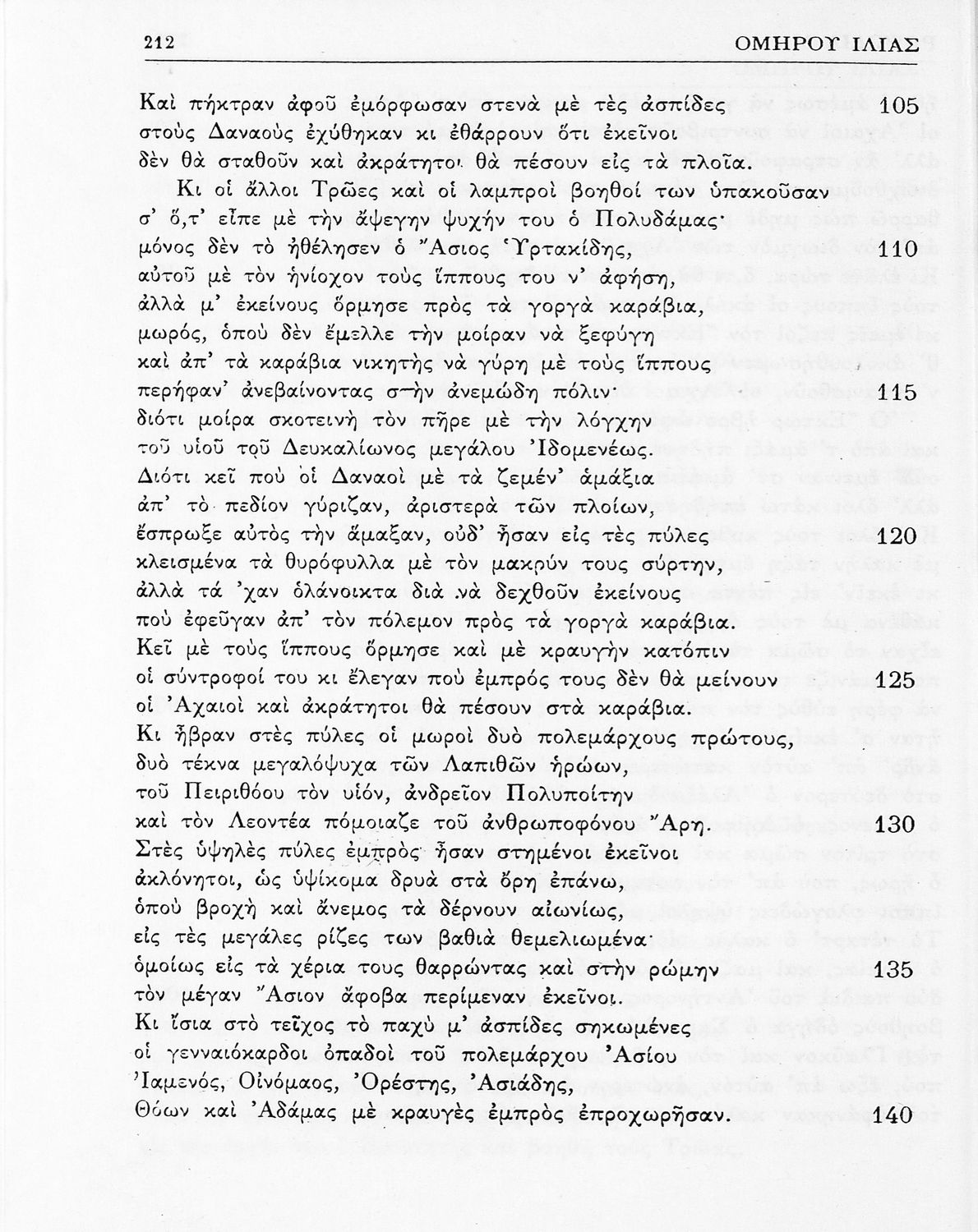 Σχολικό εγχειρίδιο της Δευτεροβάθμιας Εκπαίδευσης για το μάθημα των Αρχαίων Ελληνικών. Πρόκειται για το κείμενο της Ιλιάδας μεταφρασμένο, με πραγματολογικές παρατηρήσεις. Στο τέλος περιλαμβάνει λεξιλόγιο.