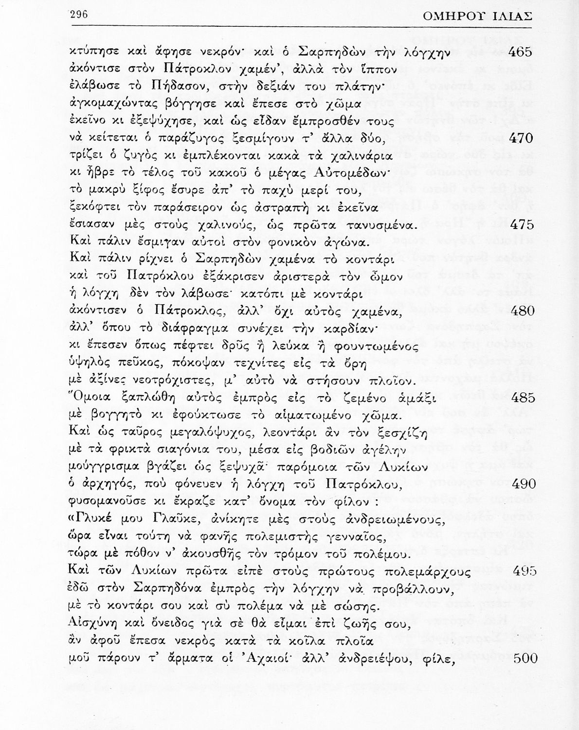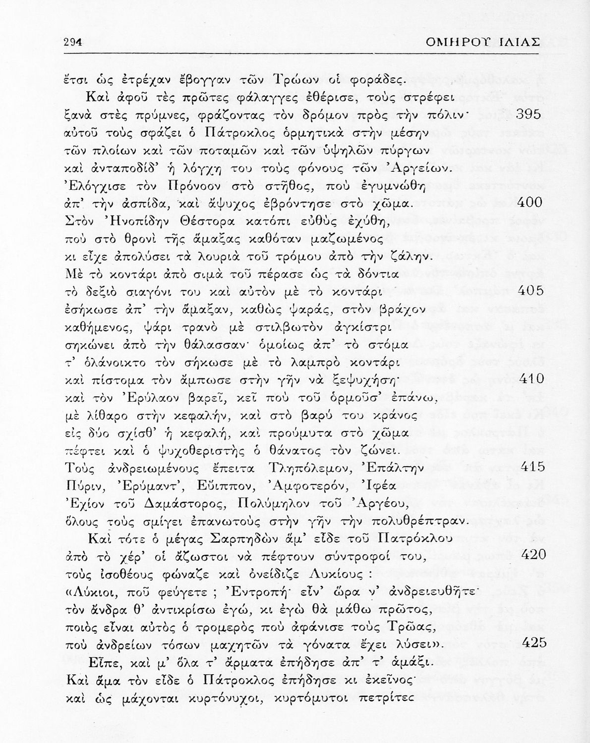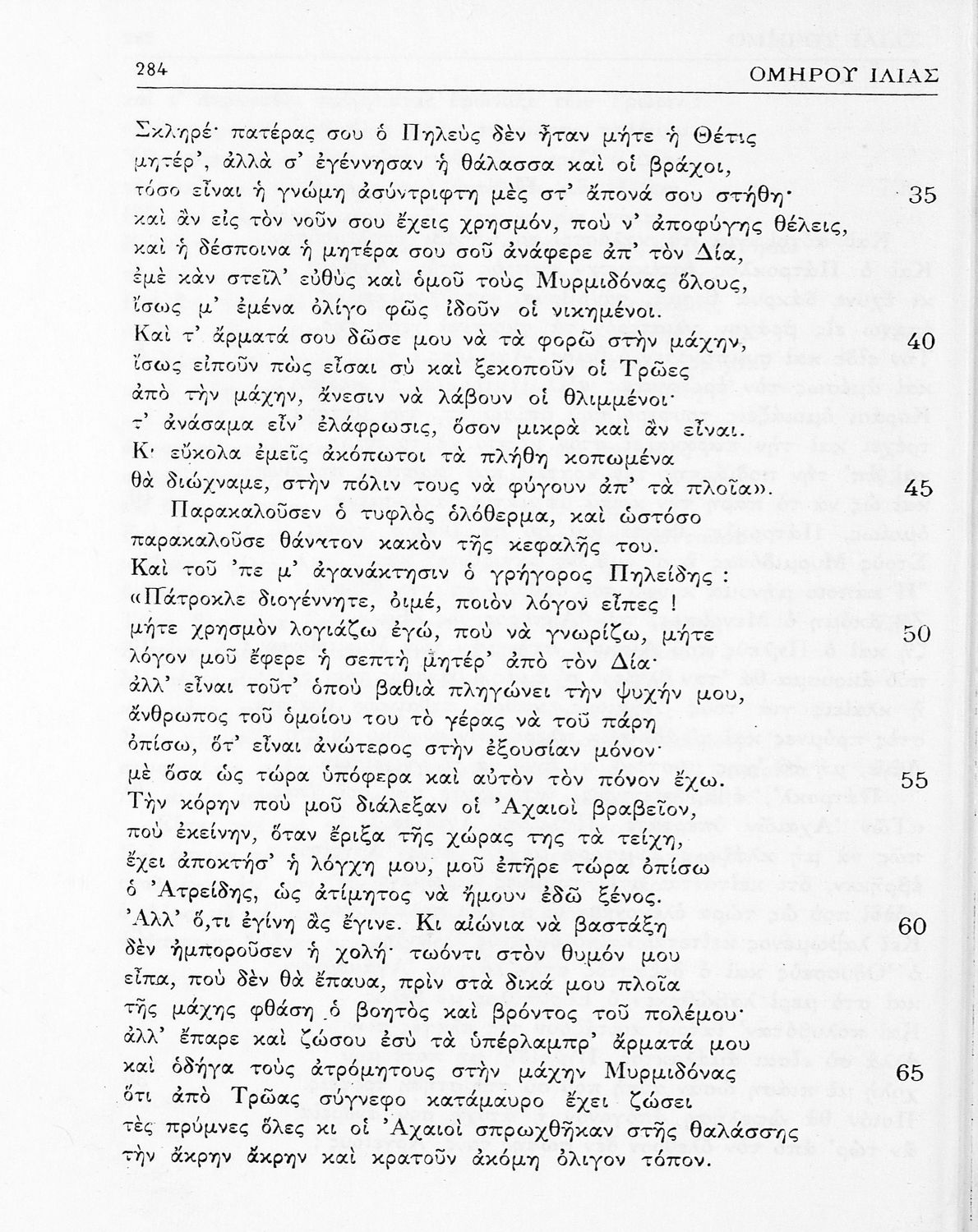Σχολικό εγχειρίδιο της Δευτεροβάθμιας Εκπαίδευσης για το μάθημα των Αρχαίων Ελληνικών. Πρόκειται για το κείμενο της Ιλιάδας μεταφρασμένο, με πραγματολογικές παρατηρήσεις. Στο τέλος περιλαμβάνει λεξιλόγιο.