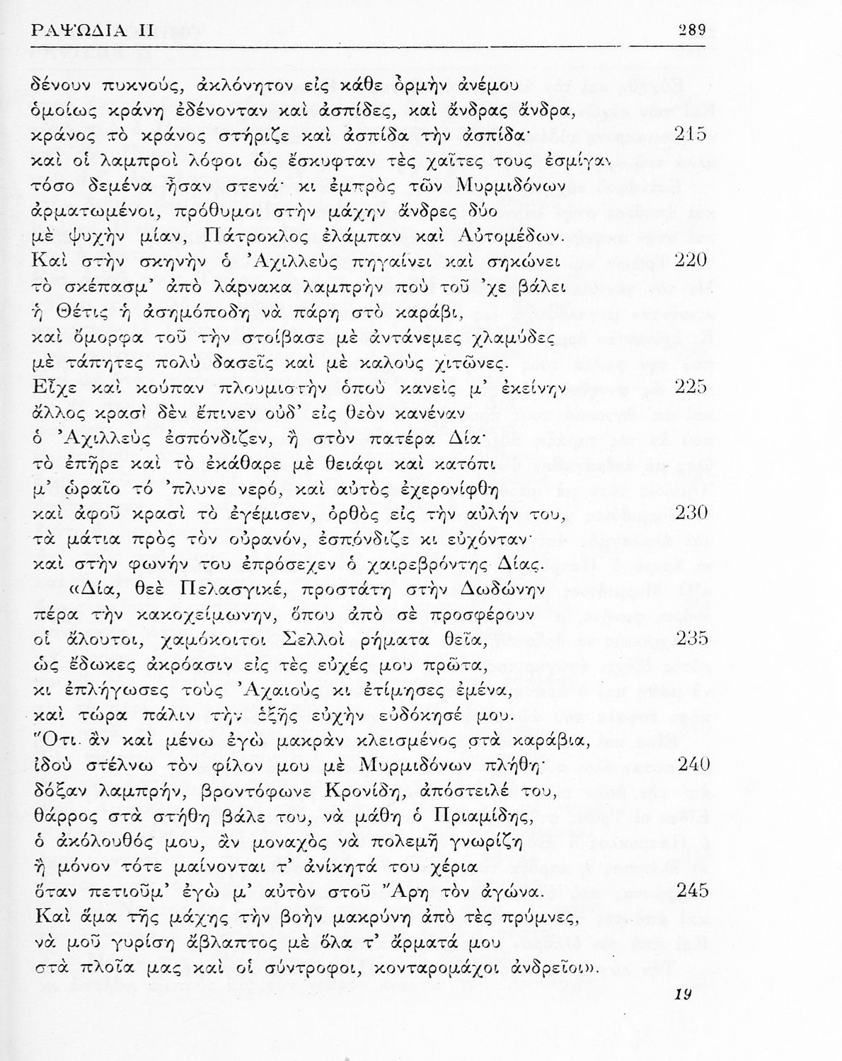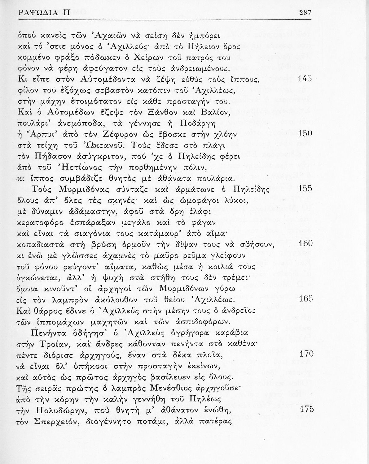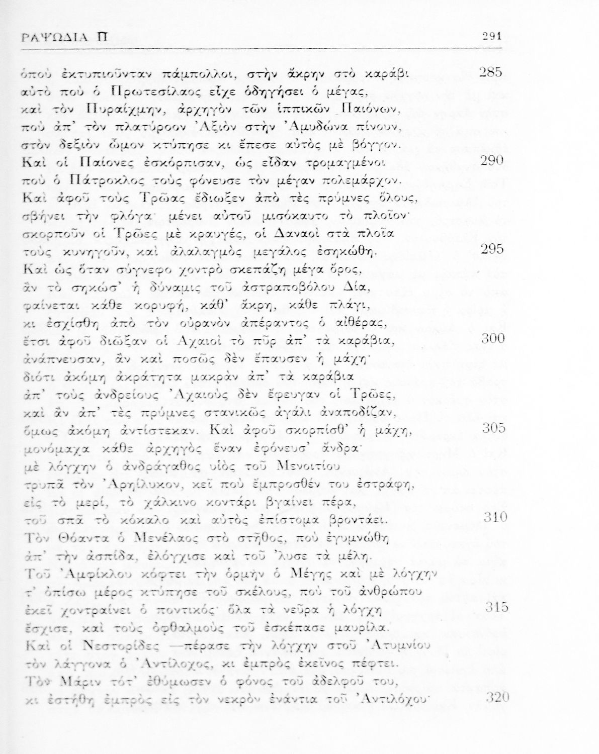 Μαθητικό βοήθημα του Ελληνικού Σχολείου, των Παρθεναγωγείων και του Γυμνασίου για το μάθημα των Αρχαίων Ελληνικών. Περιέχει τις ραψωδίες Ο, Π, Ρ, Σ, Τ, Χ, ψ, Ω από το πρωτότυπο με σχόλια και ερμηνευτικές ...